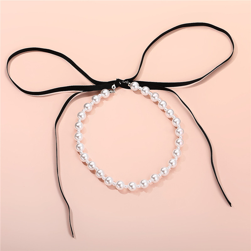 商品説明ネックレス ブラック リボン パール 真珠 黒 紐 レディース 韓国 シンプル ベルベット チョーカー シルバー オシャレ 可愛い エレガント 豪華 プレゼント ギフト パーティ