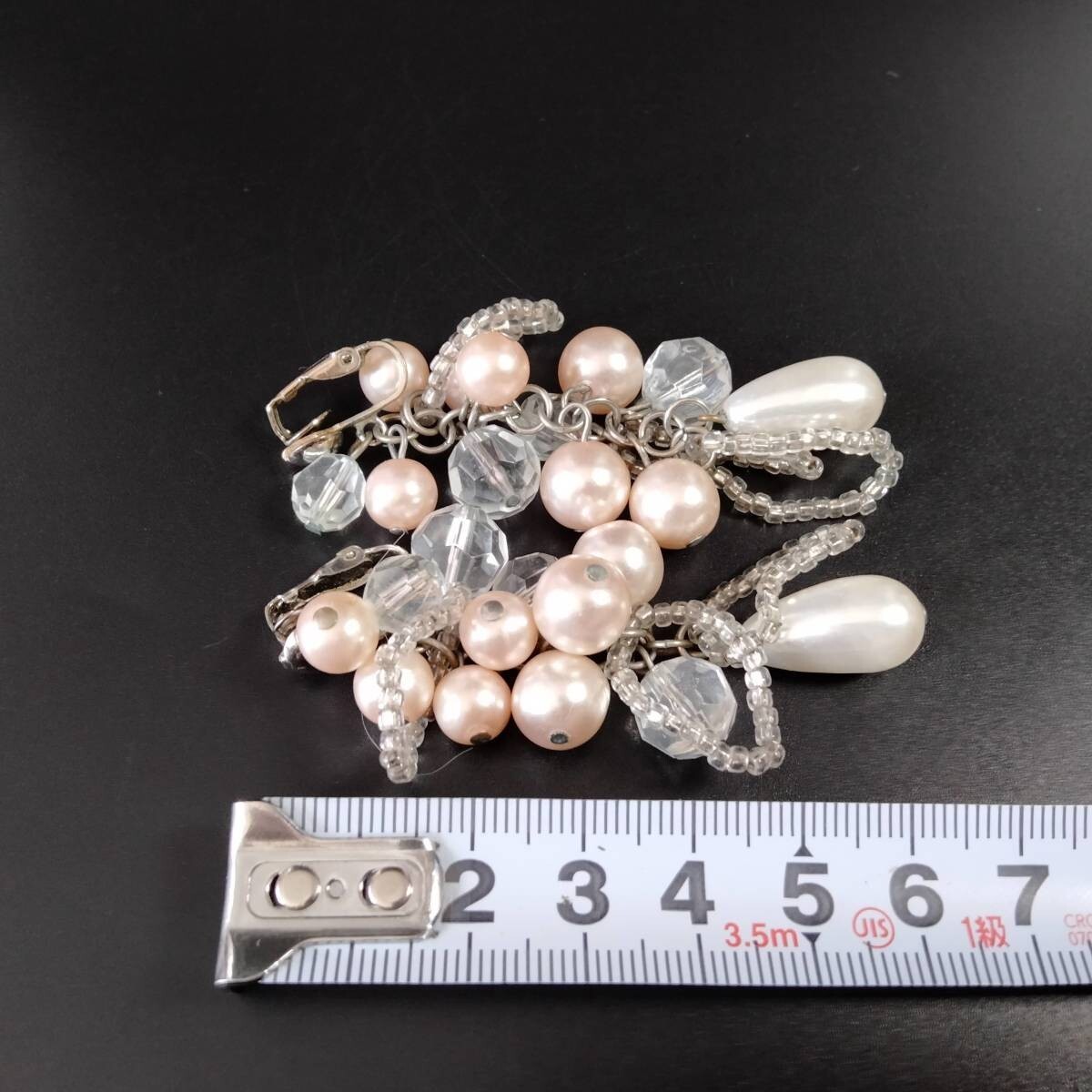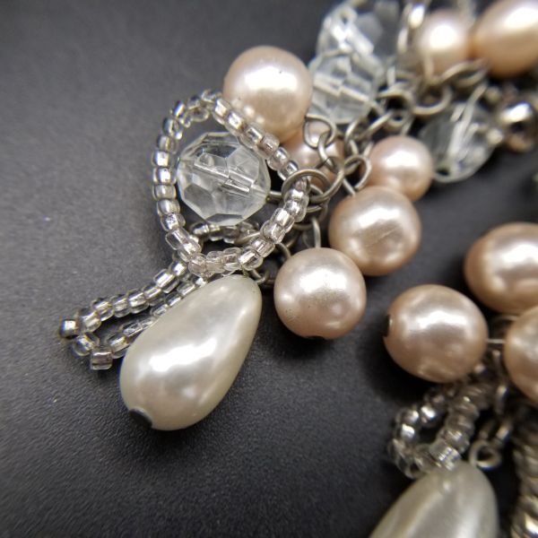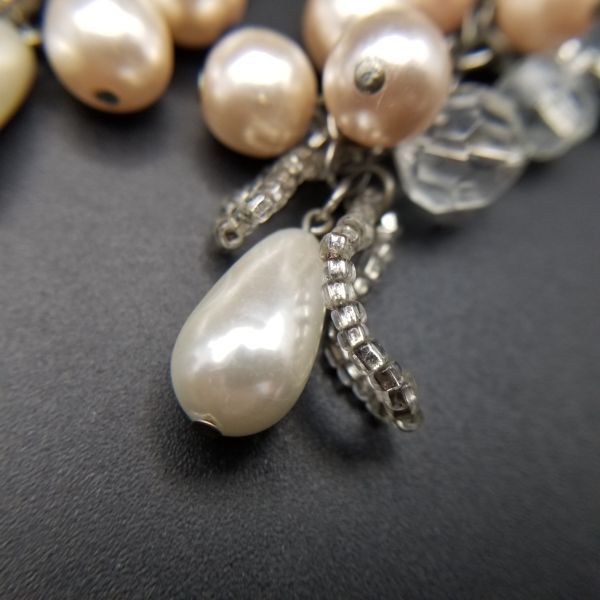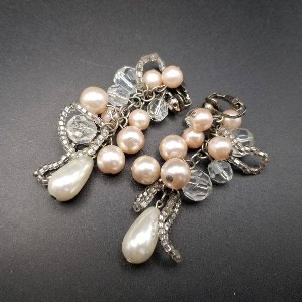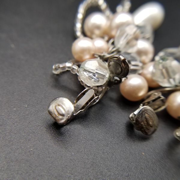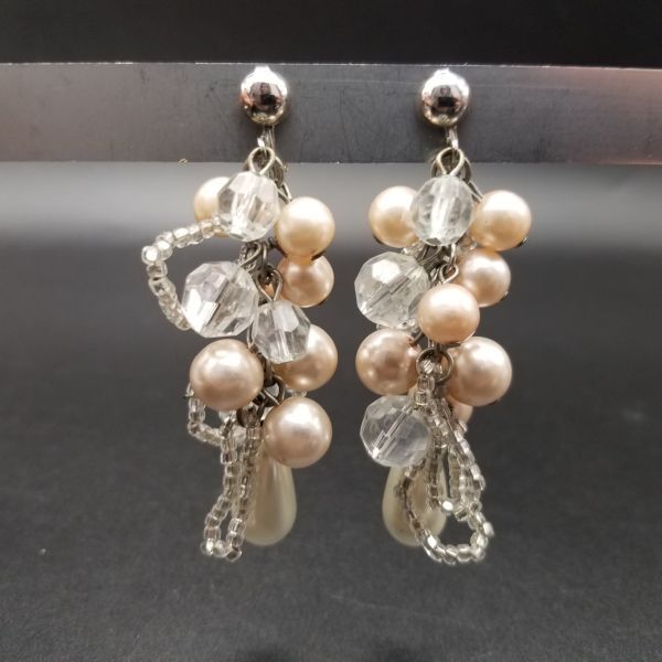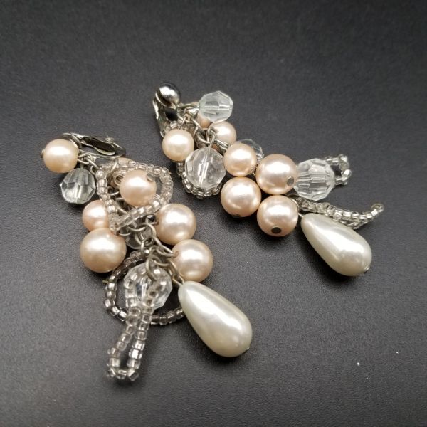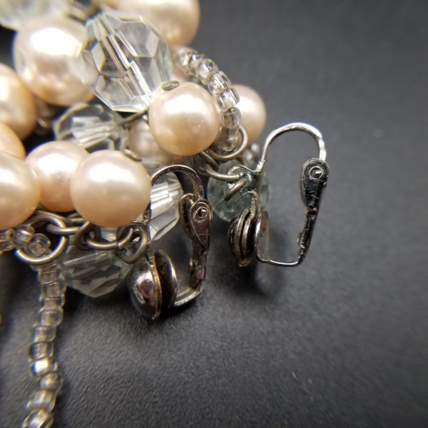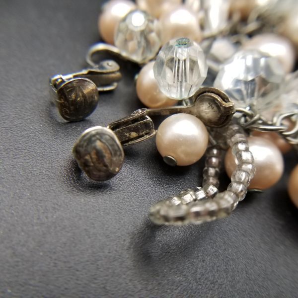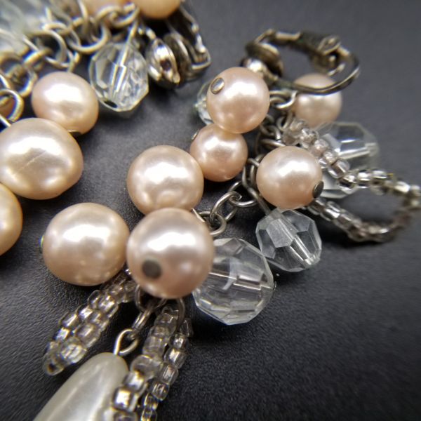 大ぶり パール フリンジ ヴィンテージ ロングイヤリング ピンクシルバートーン 昭和レトロ コスチュームジュエリー パーティー ADI3