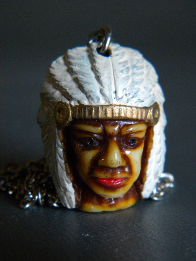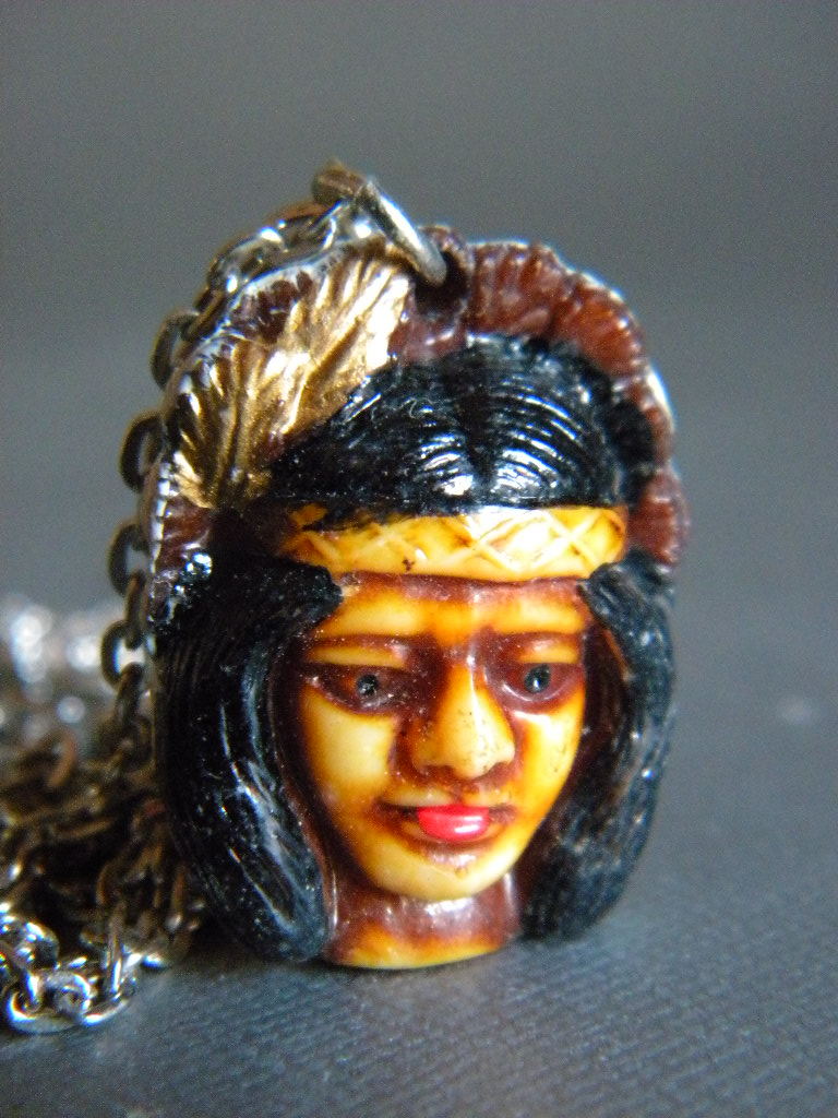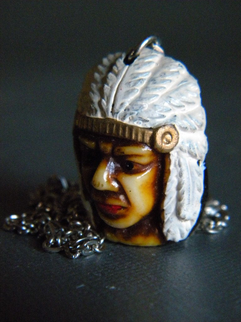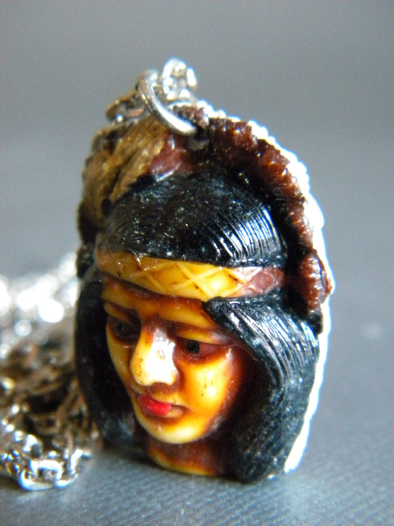 ●当時物 ★★INDIAN 先住民族インディアン !! 両面顔ペンダント 縁起物 インデアン 根付「定形外/LP可」★★未使用デッドストック