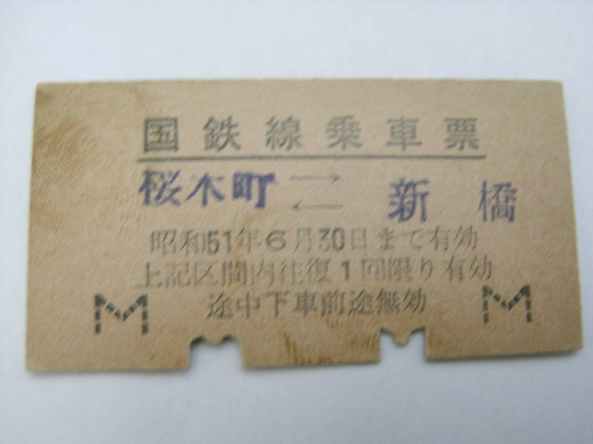 国鉄線乗車票 桜木町-新橋 昭和51年6月30日まで有効 国鉄