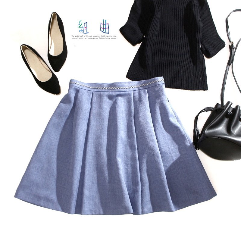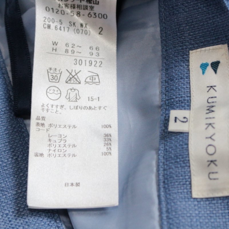 組曲 クミキョク 株) オンワード樫山 春 夏 きれい色 M 9号 ほんのり艶 フレアスカート ポリエステル スーツ 水色 シルバー