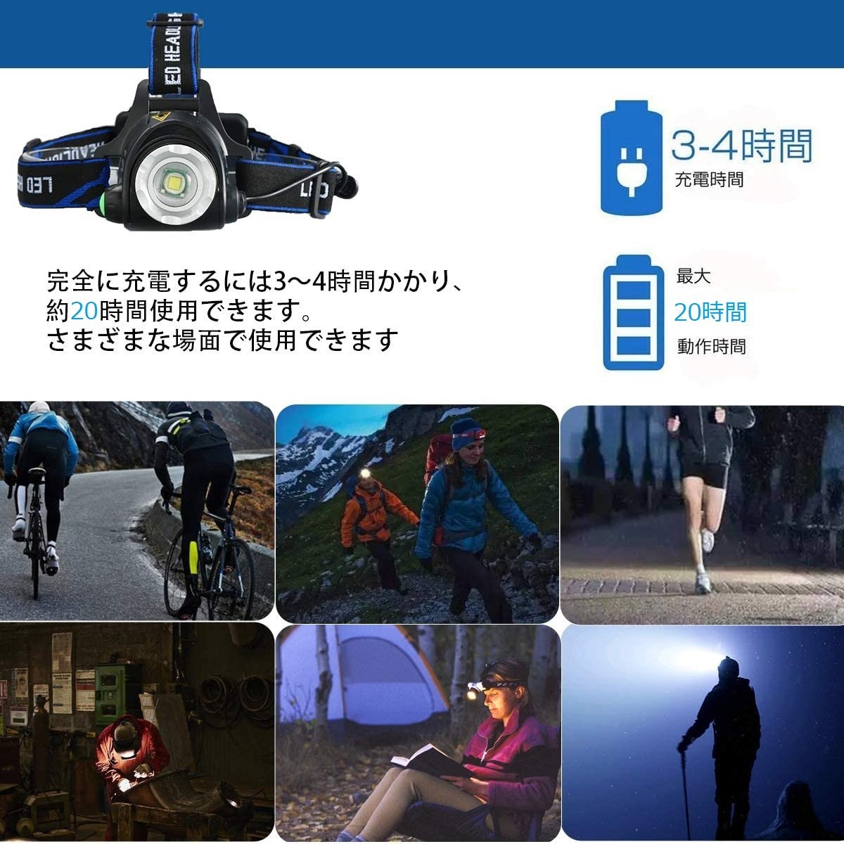 • 【USB充電式】こちらのヘッドライトの電源は18650型充電池を使っています。単三のアルカリ乾電池とは違い、何度も充電が可能で、毎回明るいライトランタン、センサーライト、キャンドルランタン替わりとしてご使用いただけます。作業用LEDライト、アウトドアライトや登山ライト等、何度でも明るいライトとして ヘットライト を工事用でも、登山用でもご利用いただけます。