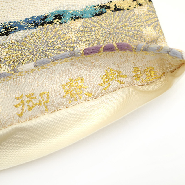 【中古】 袋帯 京都 西陣 正絹 金糸 御寮典進 装束名錦文 白ベージュ 華文 花菱 菊 極上 重厚感ある一本 フォーマル 結婚式 入学式 卒業式 七五三 お茶会 袋帯 帯 販売 購入 リサイクル 美品 中古 仕立て上がり みやがわ sb52191
