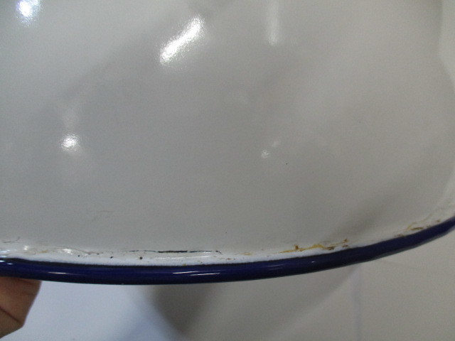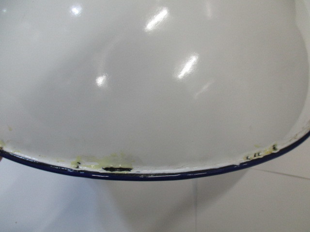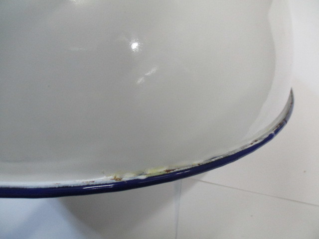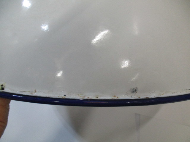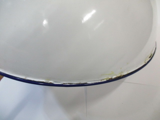 1195261947 | 昭和の仕入れの、ホーローボウル32cm縁にポツンと塗り残しあり |