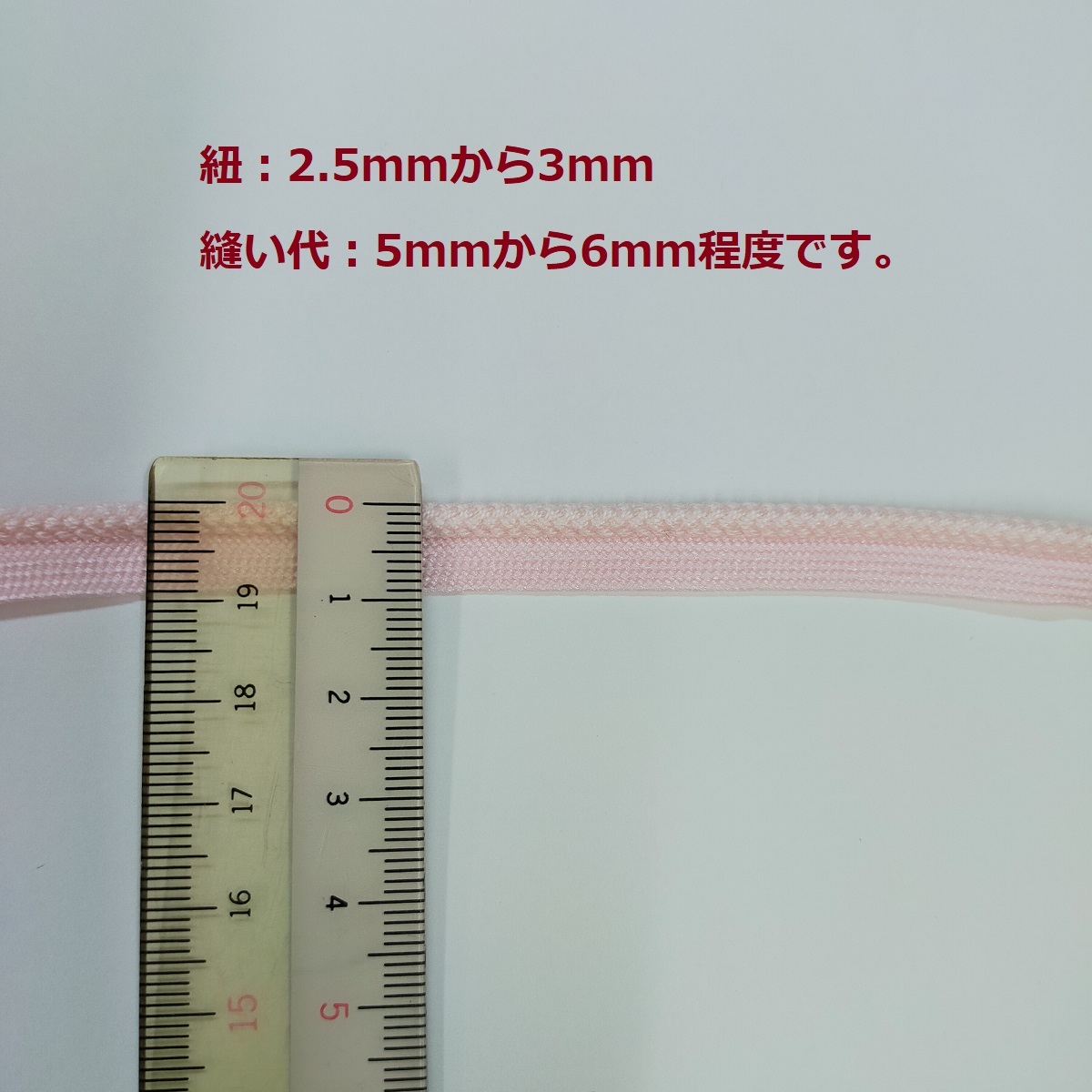 | サイズ | 巾:約7.5mmから9mm(紐部分:約2.5から3mm テープ部分:約5から6mm)(計測方法により多少異なります。) |