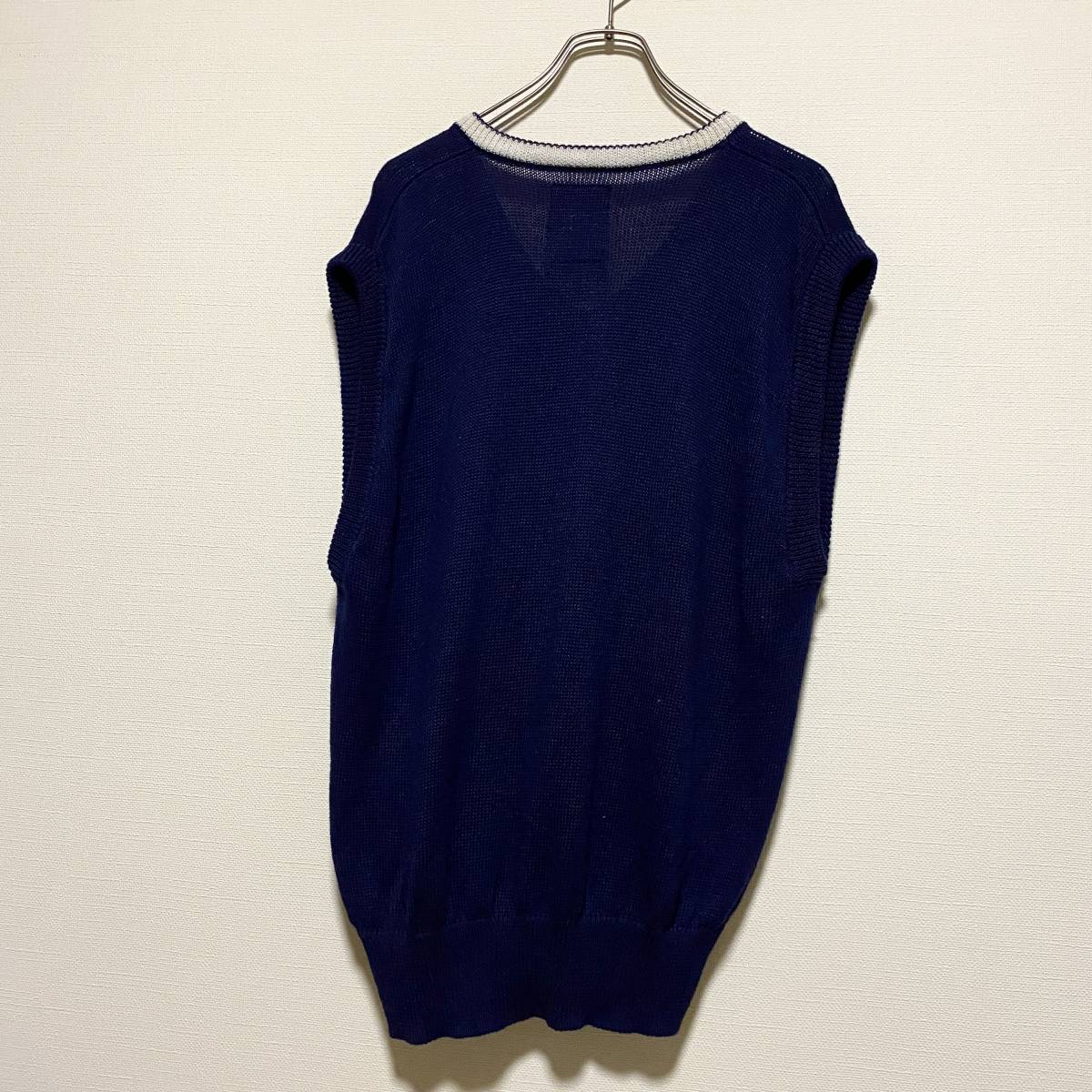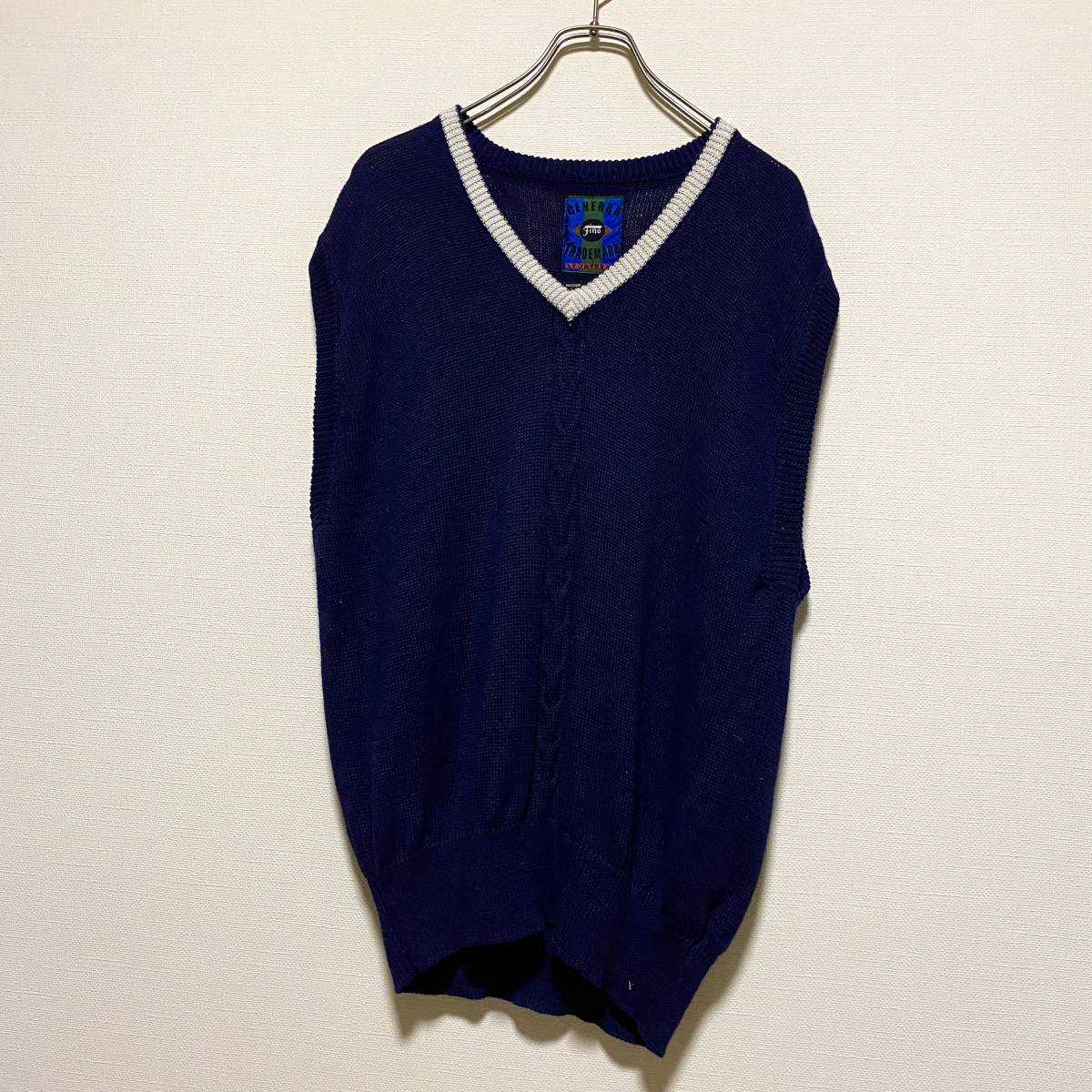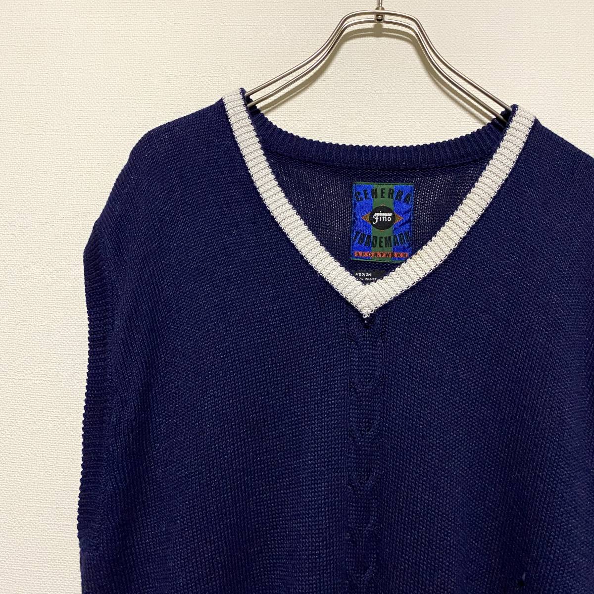 アメリカ古着 90s ヴィンテージ ニット ベスト セーター Vネック ネイビー 無地 Mサイズ 【P820】