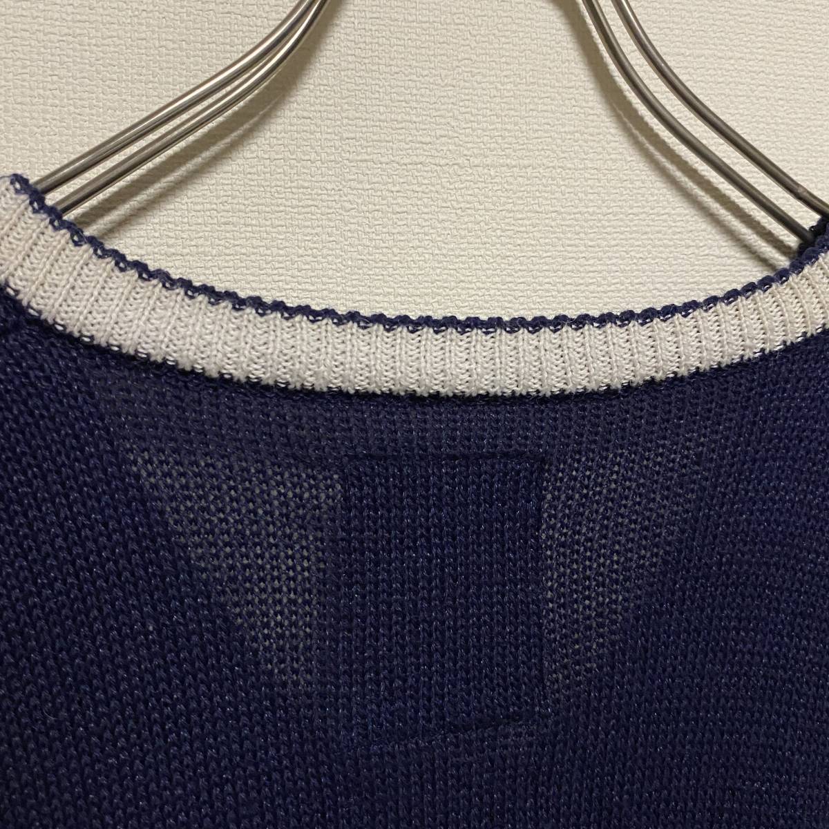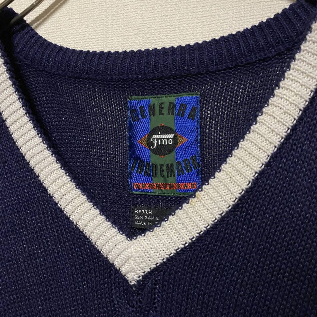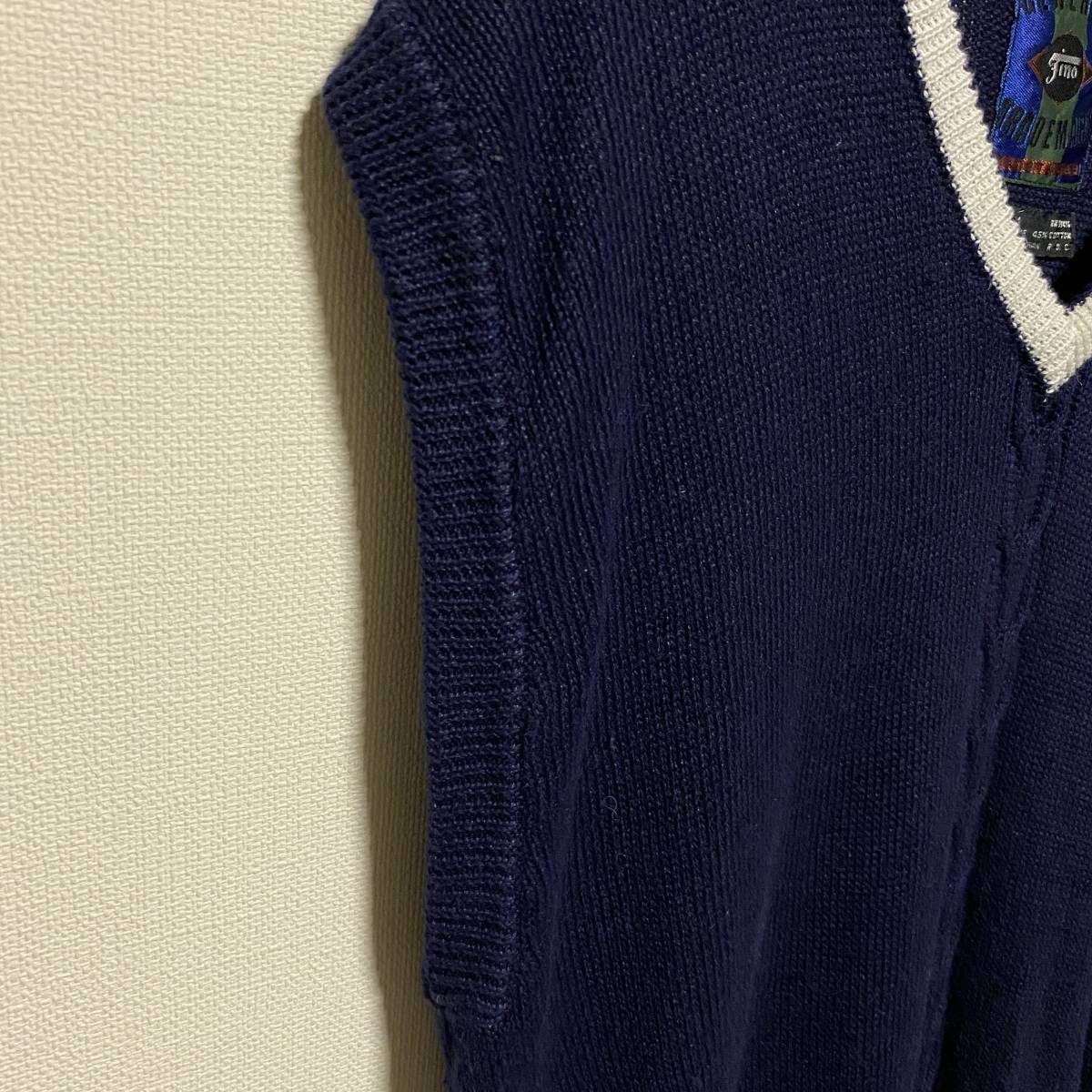 アメリカ古着 90s ヴィンテージ ニット ベスト セーター Vネック ネイビー 無地 Mサイズ 【P820】