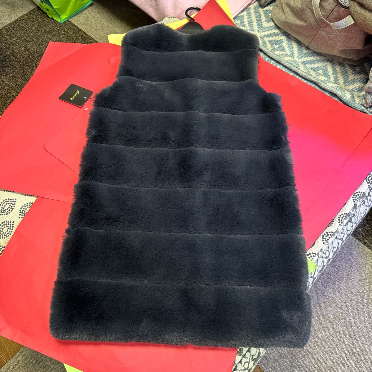 ロング丈、約84センチ.身幅51センチ.前にホックが、3ヶ所付いています.ポケット無し