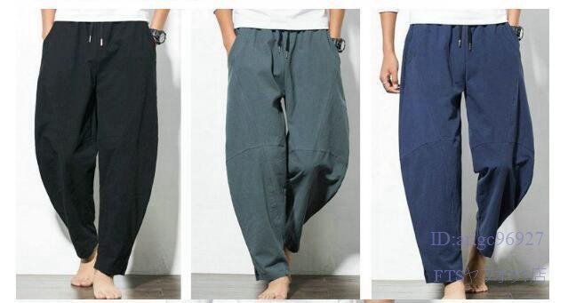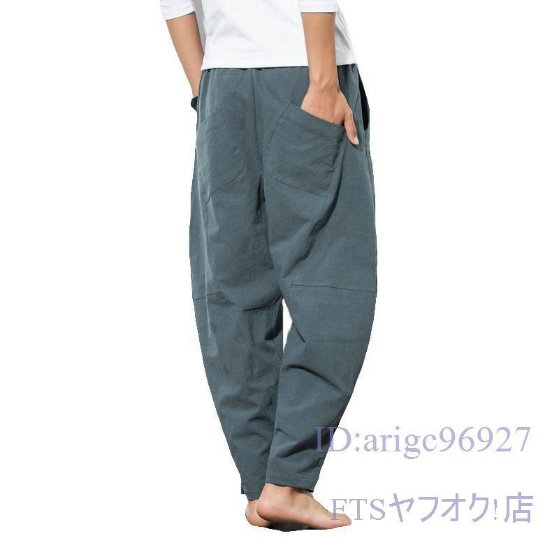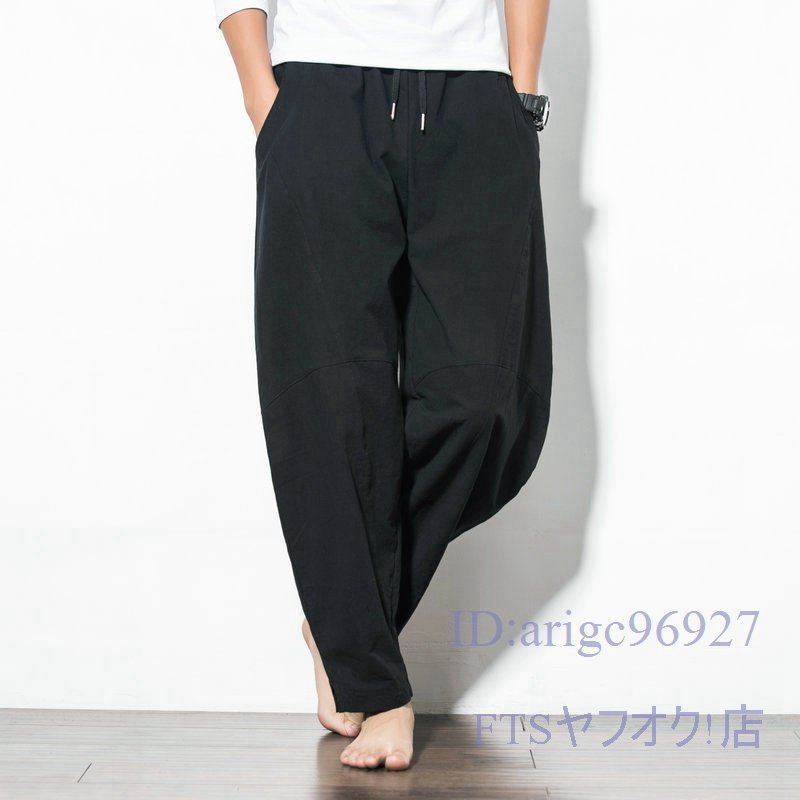 S901☆新品メンズ サルエルパンツ リネンパンツ 綿麻 ワイドパンツ テーパードパンツ 無地 ゆったり チノパン 大きいサイズ M~5XL