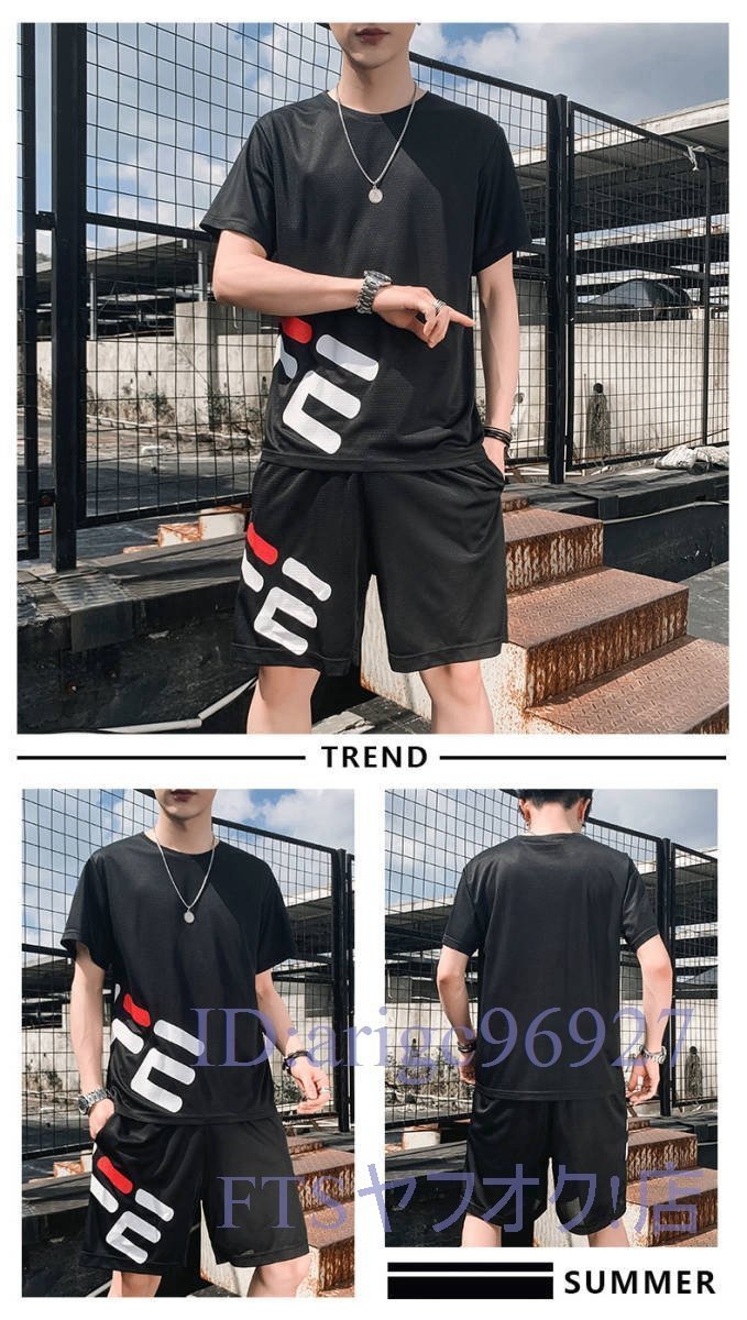 S876☆新品メンズトレーナースポーツウエアセットアップスウェット上下セットジャージTシャツハーフパンツショートパンツ黑M~4XL