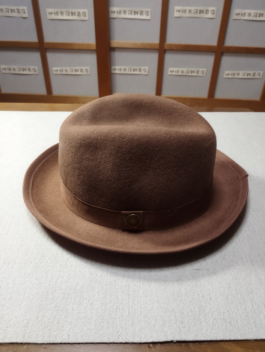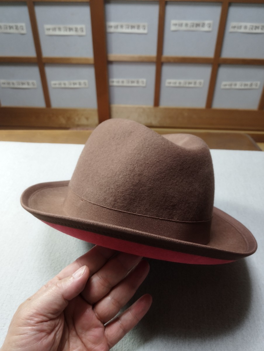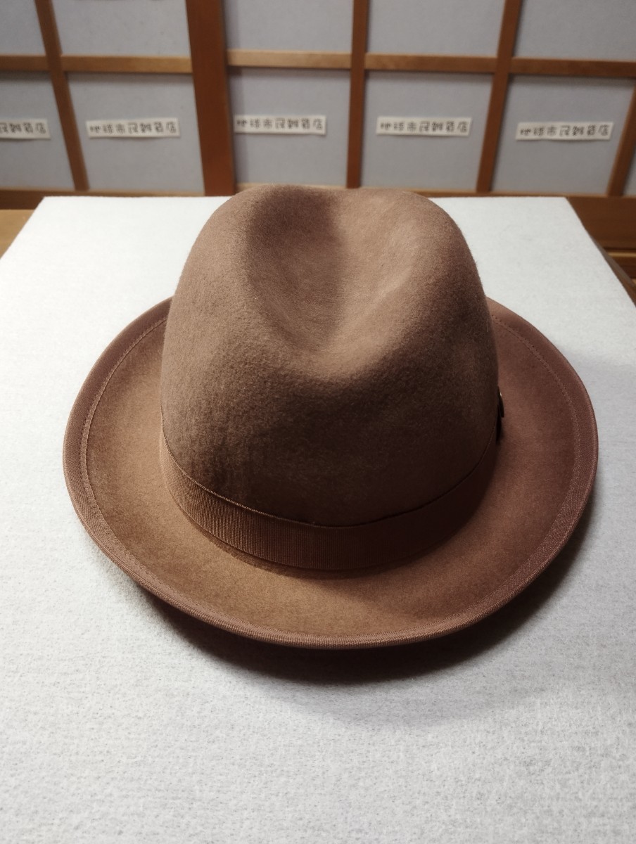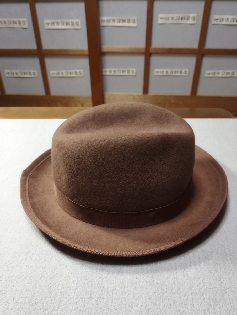 柔らかいウールフェルト使用の山高帽子です、自分で形を作るタイプのハットです。
