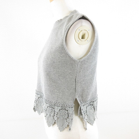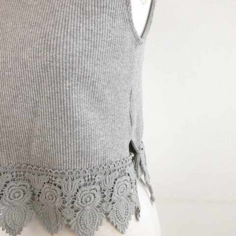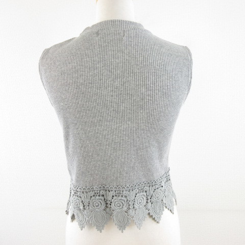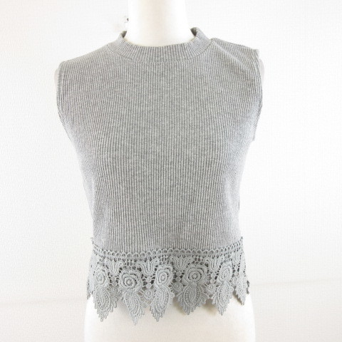 アーベーセーアンフェイス abc une face ノースリーブニット カットソー ショート丈 レース ストレッチ グレー F *A171 レディース