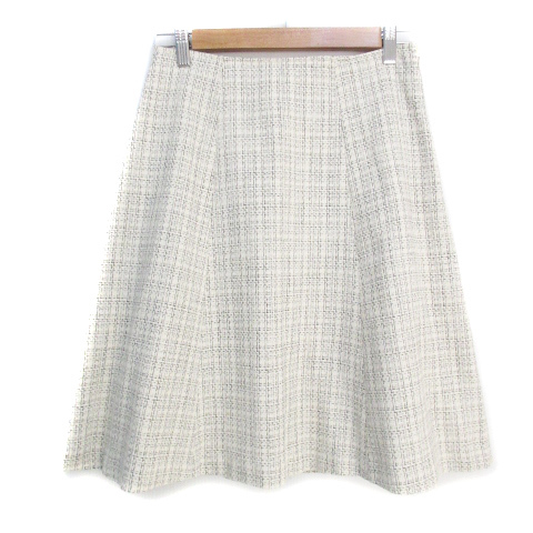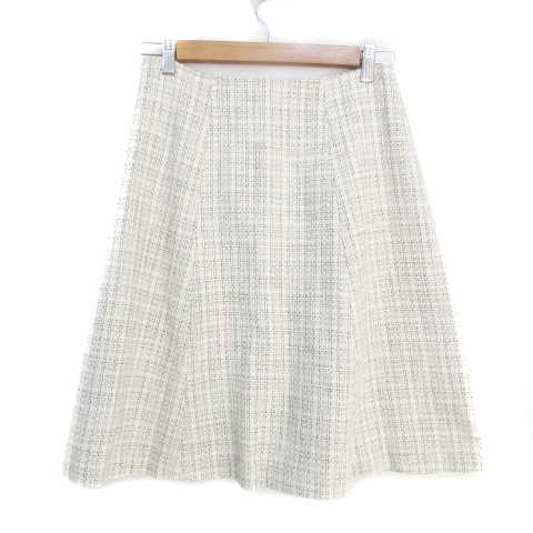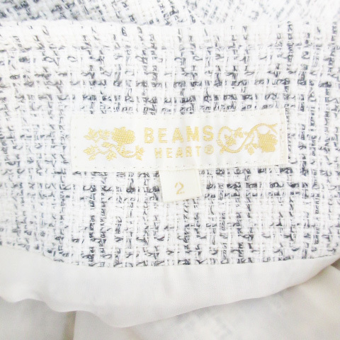 ビームスハート BEAMS HEART ツイードスカート フレアスカート ひざ丈 2 白 黒 ホワイト ブラック /FF48 レディース