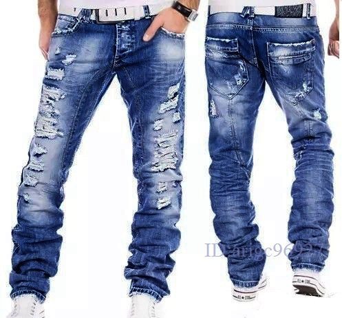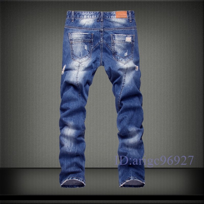 S478☆新品メンズ デニムパンツ スキニーパンツ カジュアル ジーンズ ダメージ加工 ストレッチ ジーパン ブルー 32