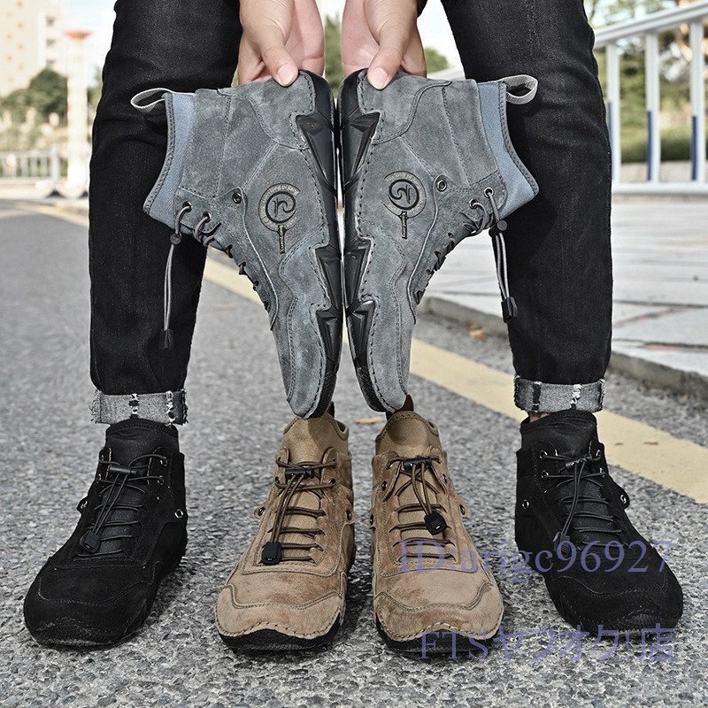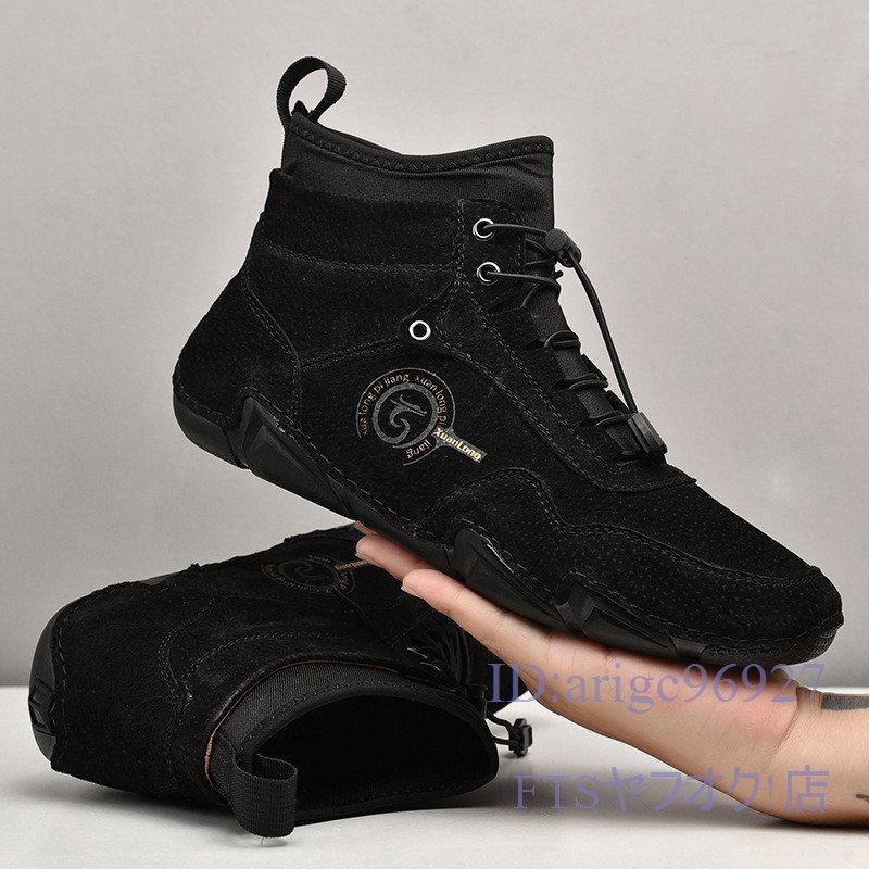 T837☆新品ハイカット スリッポン マーティンブーツ メンズ ショートブーツ スニーカー 春秋冬靴 ドライビングシューズ 黒 27.5cm