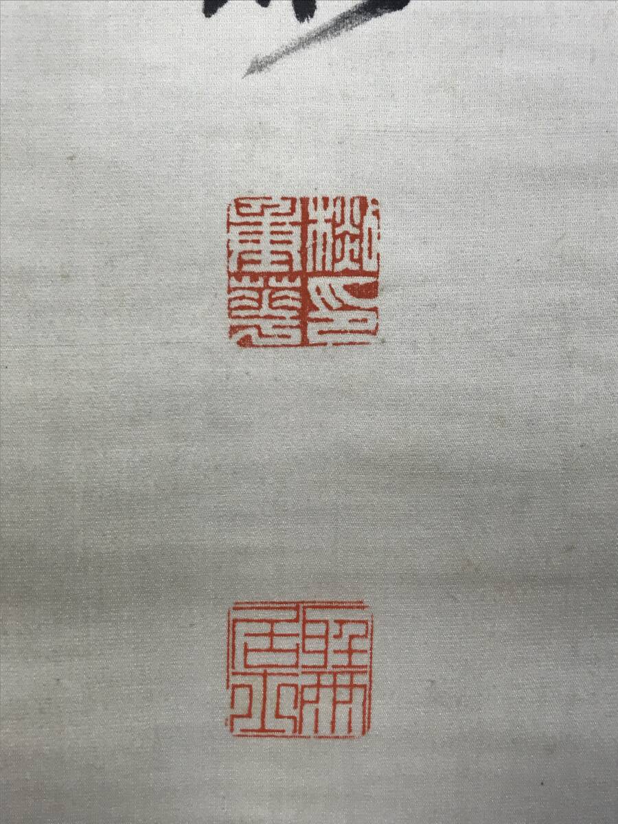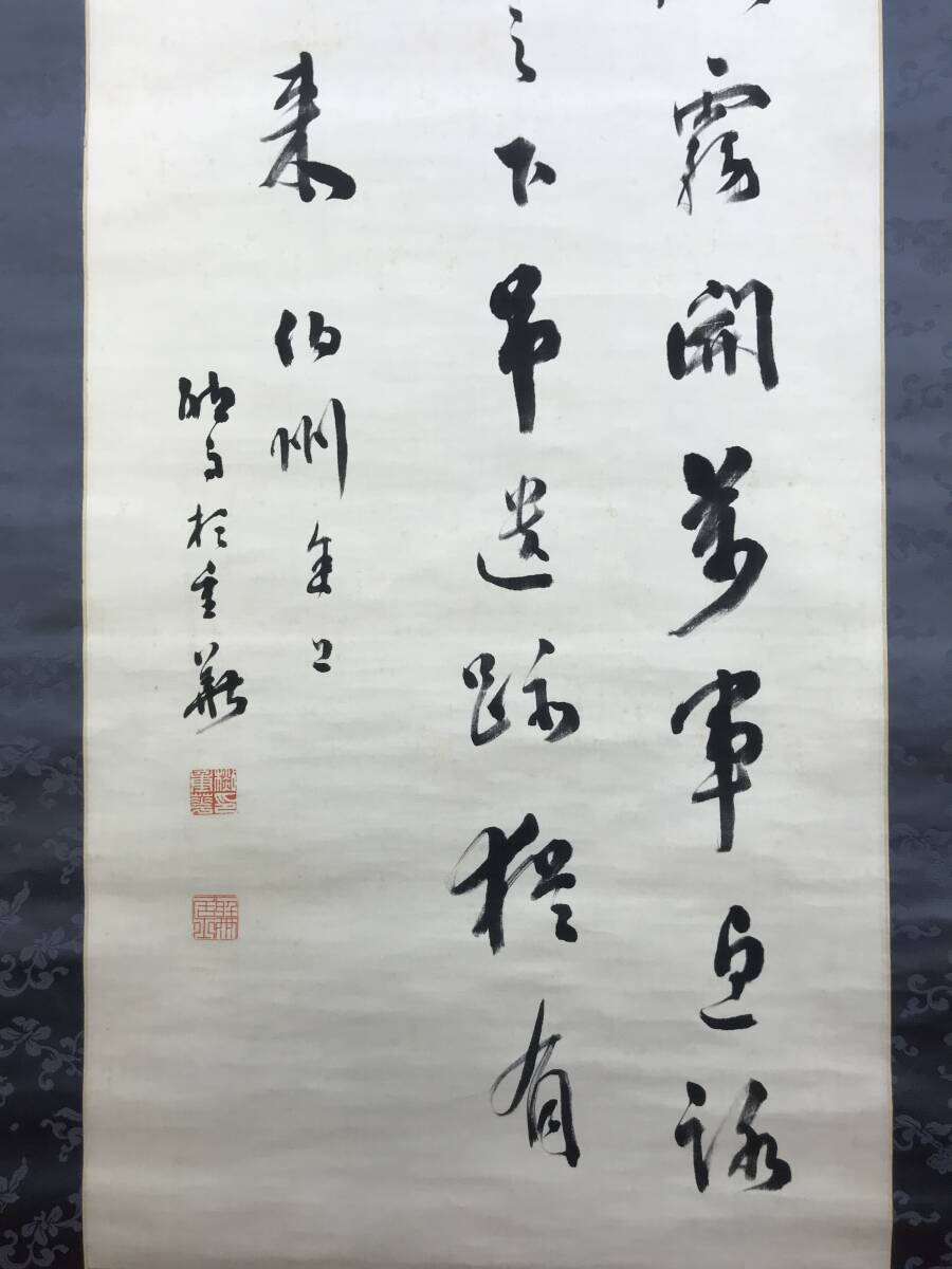 【作品状態】 本紙は絖本肉筆です。本紙は薄汚れ、全体に多数の糊シミあります。表装は絹表装で良好です。