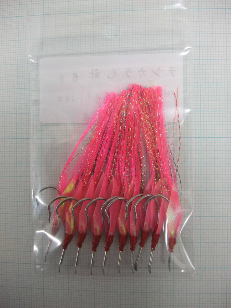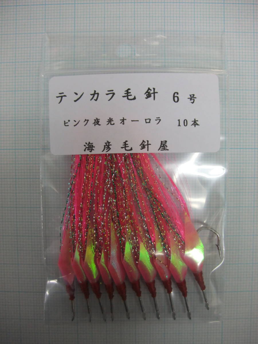 6PPYO テンカラ毛針6号 イソ縄毛針 オキメバル ピンクフラッシャー ピンク夜光オーロラシート付き 10本セット