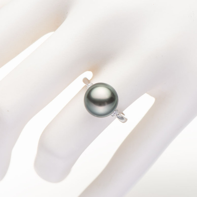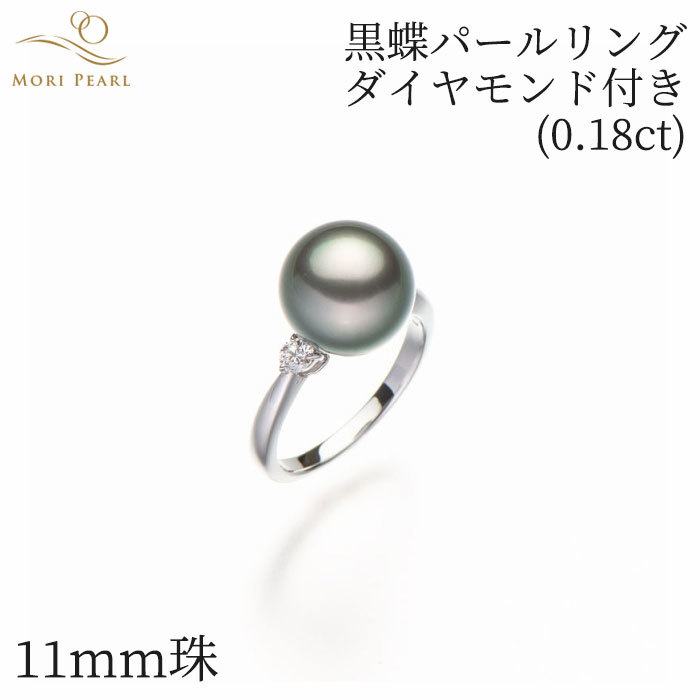 黒蝶パールリング(003) 11mm ダイヤモンド計0.18ct アコヤ 真珠 卒業 入学式 結婚式 冠婚葬祭
