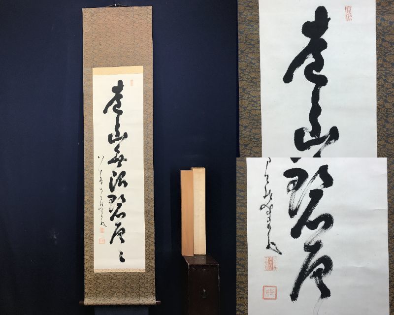 真作/中原南天棒/一行書/遠山無限碧層々/茶道具/茶掛/禅語/掛軸☆宝船☆AE-403