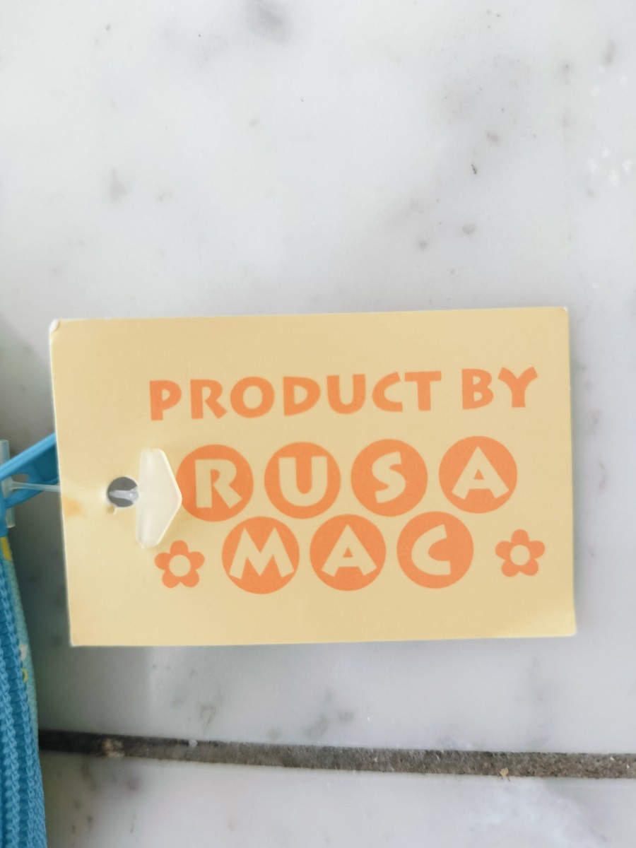 キャラクターについては良く分かりませんが、片面に可愛らしい熊のキャラクターと「KUMAPEE」の名前が印刷されております。また、商品とタグには「PRODUCT BY RUSAMAC」の文字が記されているほか、商品には「KUMAPEE & USAPEE」の文字も記されております。