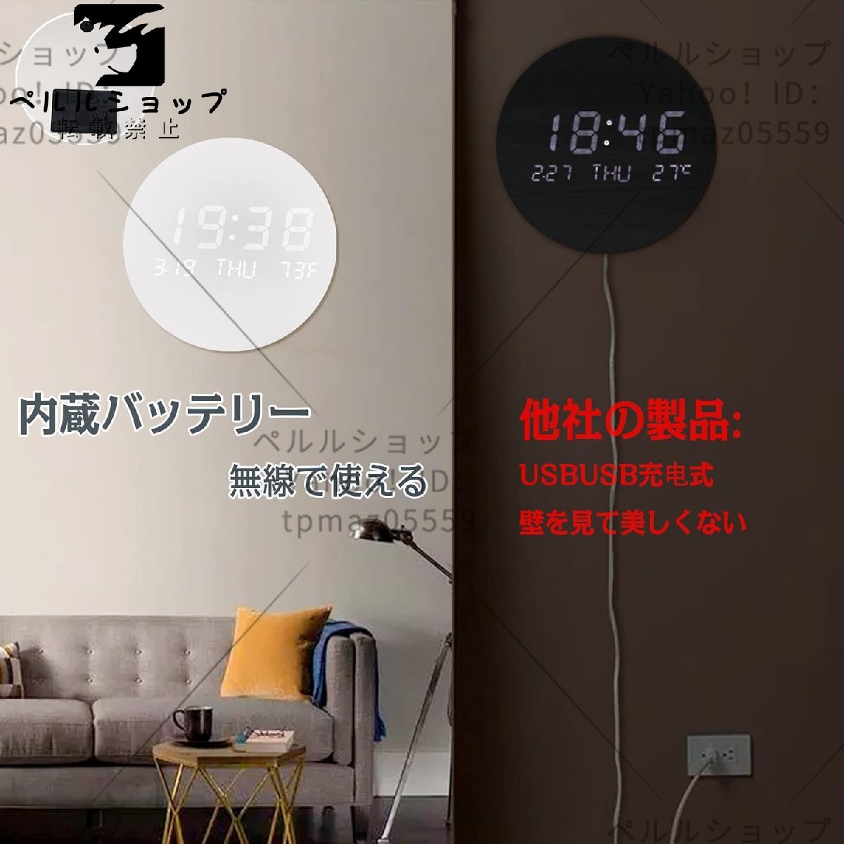 時計 無線長時間航続 壁掛け デジタル 掛け時計 夜の光時計おしゃれ クロック 掛け時計 北欧風 デジタル電子時計 白い