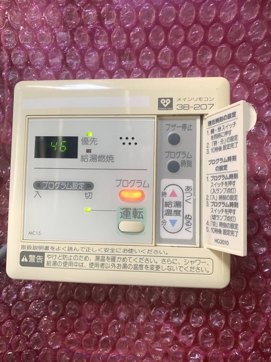 大阪ガス 38-207 パーパス製  給湯器用リモコン MC15   動作確認済みです。