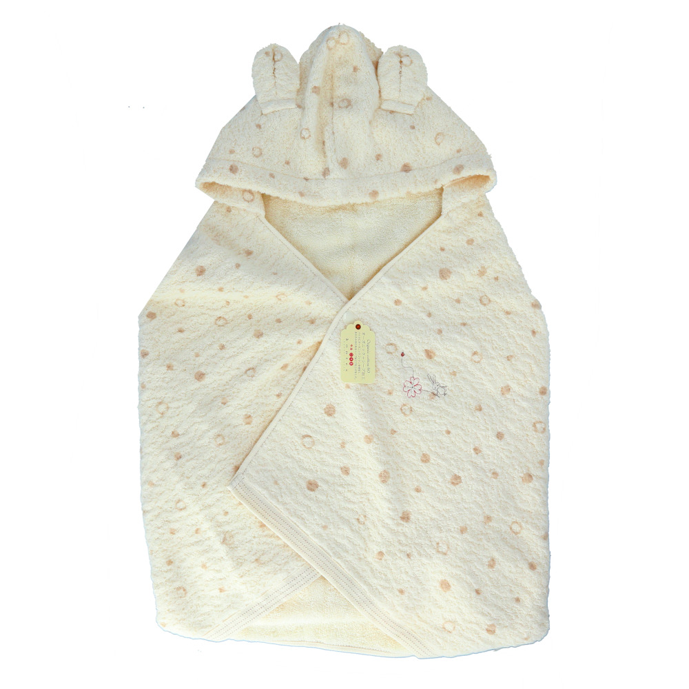 ・ほんわか優しいドット模様と、ママも嬉しいワンポイントの刺繍入り。耳つきフードを被れば、お子様もにっこりキュートな姿に♪