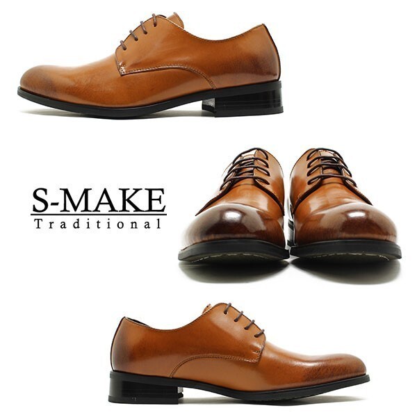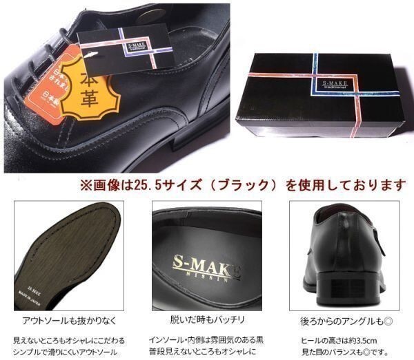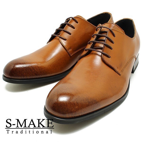 箱付き新品★日本製x本革/S-MAKE★プレーントゥ/ビジネスシューズ【26.0/EEE/茶】歩きやすい!名ブランド品質◆n7319br