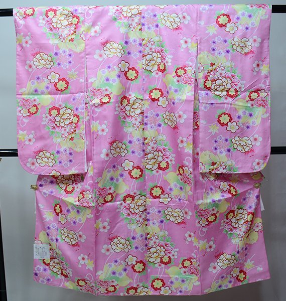 | サイズ | ■着物サイズ 身丈約132cm 袖丈約76cm 裄丈約58cm 適合身長約105cm~135cm ※裄丈=腕を斜め45度下げた状態で、背中首ゴリゴリ部分から、肩上を通して、手くるぶしまでの長さ 裄丈が合えば、お仕立て(肩上げ)は必要ございません。 若干大きくても着付けにて対応が可能です。 身丈は、おはしょりにて調節できます。 ■草履サイズ:21cm |