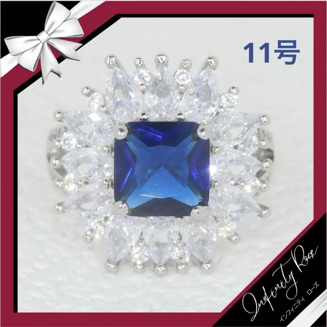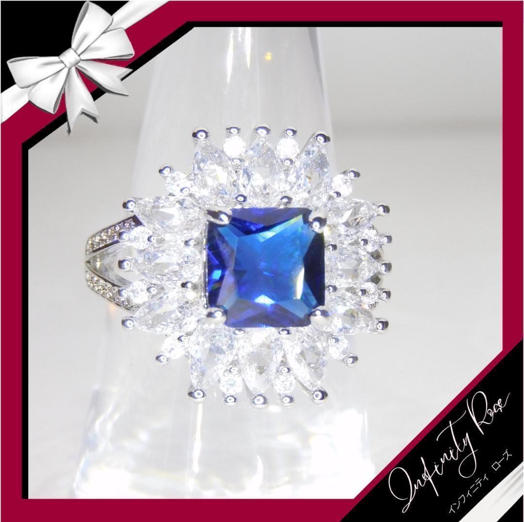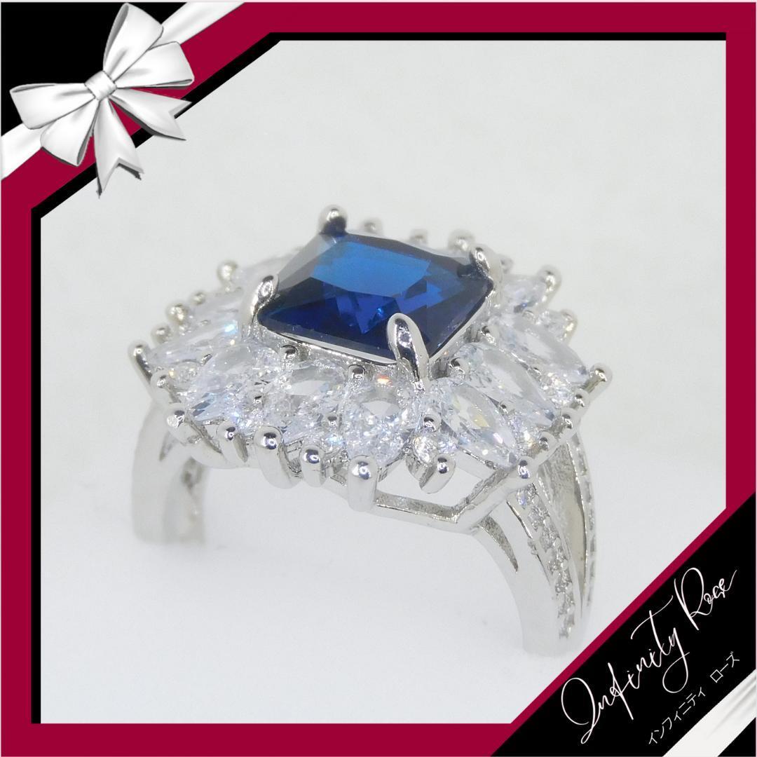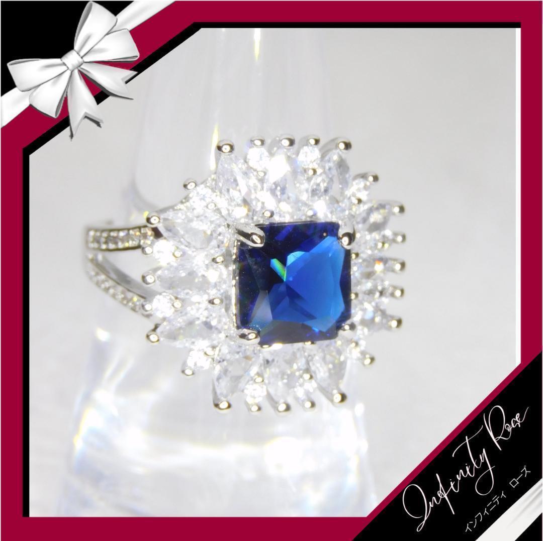 (R043SB)11号 ブルー豪華煌めく手元クリスタルワイドリング 爪留指輪