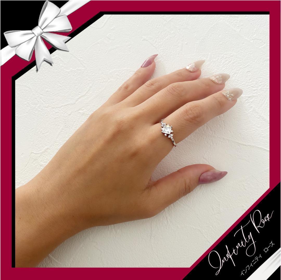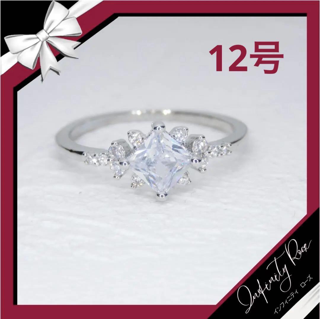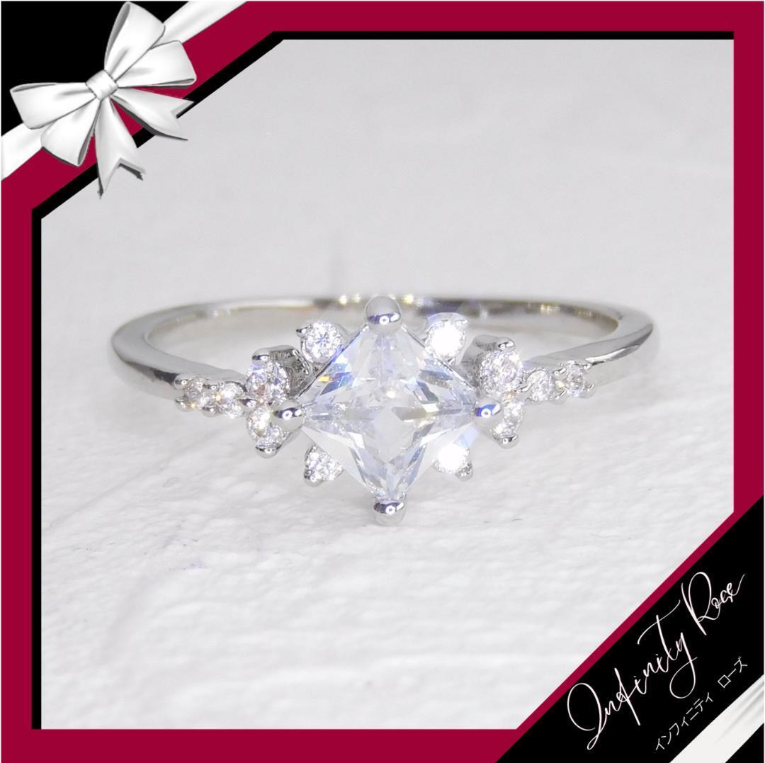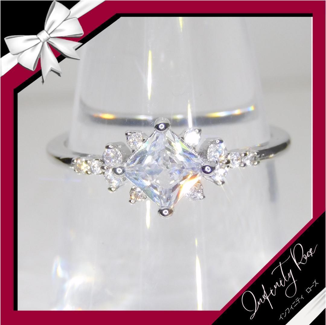 (R049S)12号 シルバースクエアオーロラクリスタルリング 高価爪留 指輪