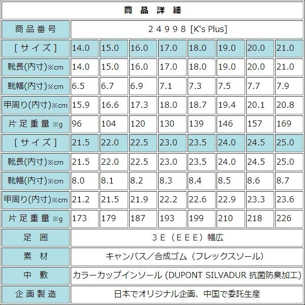 7色のカラーバリエーション、14.0cm~25.0cmと豊富なサイズをご用意しました。デザイン性と機能性に優れた、子供に喜ばれる一足です。