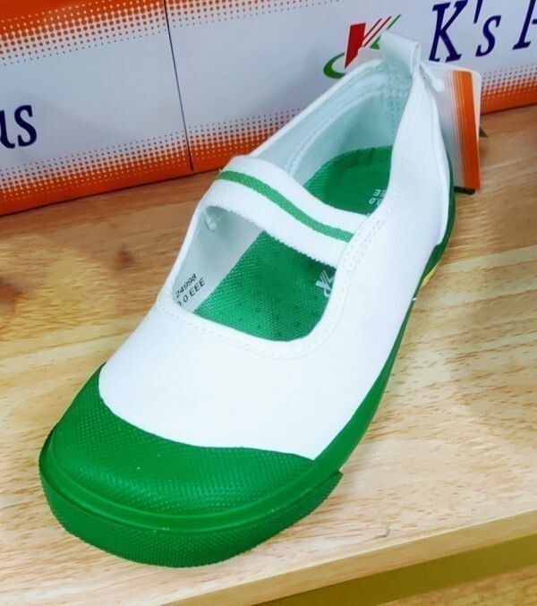 24998 新品 上靴 上履き グリーン 23.5cm ゴムベルト カップインソール 防滑底 抗菌 防臭 幅広 体育館シューズ バレエシューズ