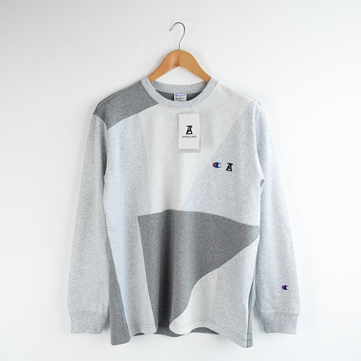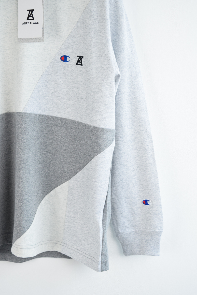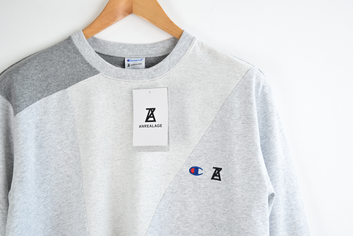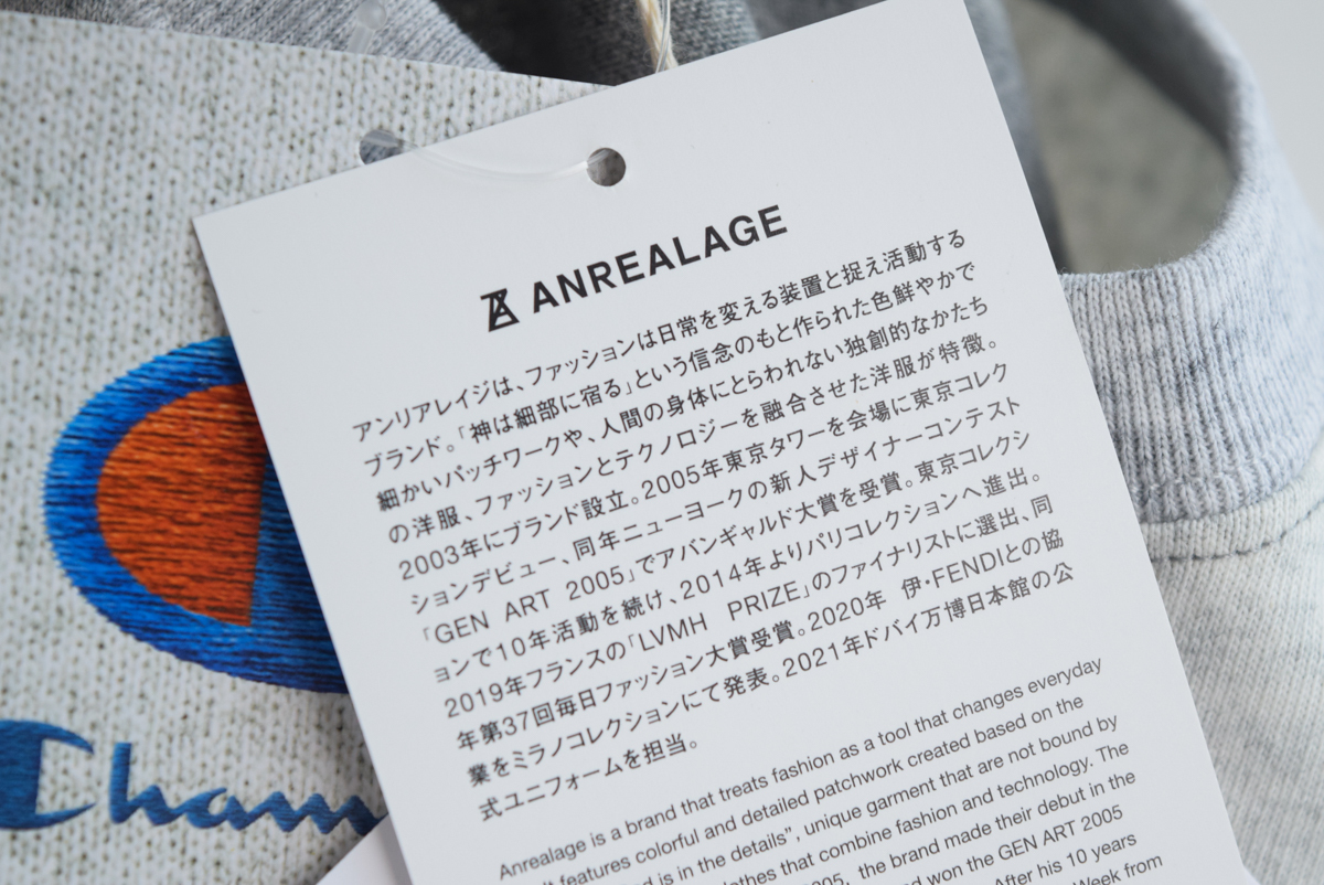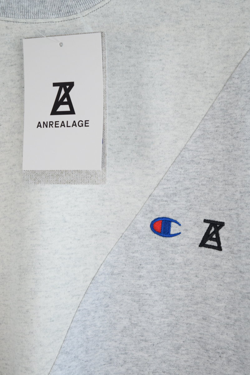 胸にChampionとANREALAGEのロゴ刺繍入りです。