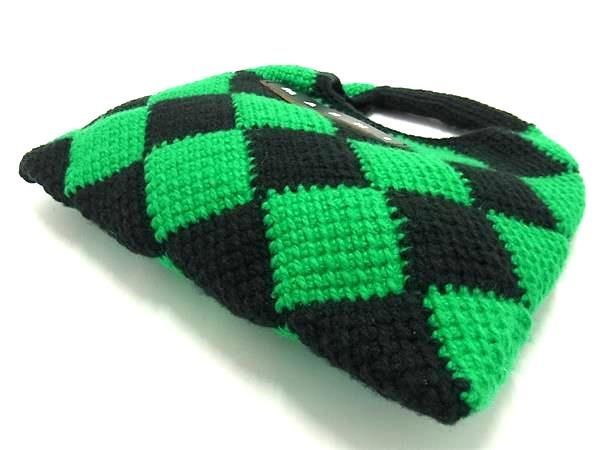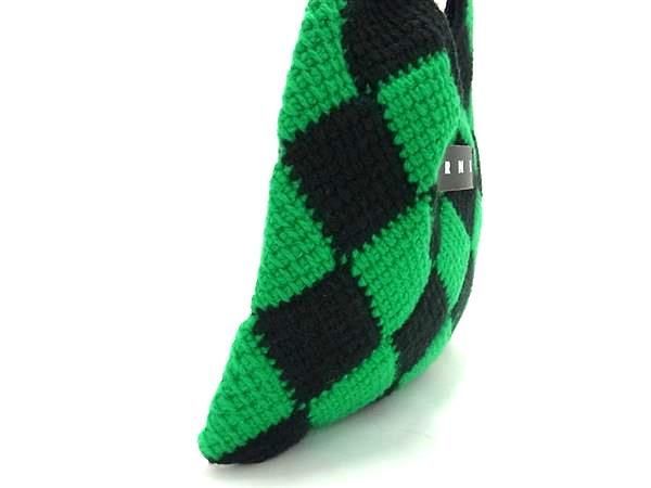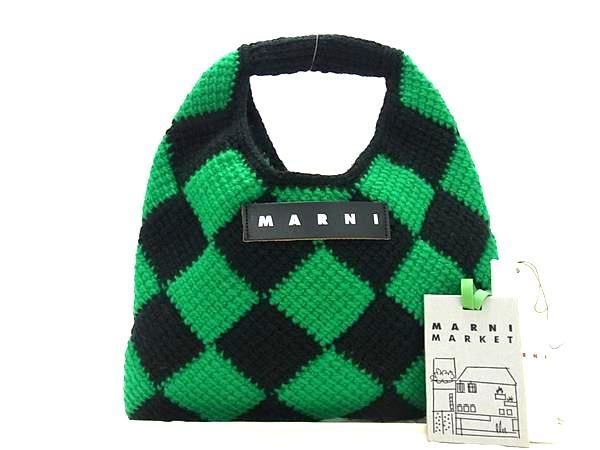 ■新品■未使用■ MARNI マルニ マーケット アクリル100% ダイヤモンド ワンハンドル ハンドバッグ グリーン系×ブラック系 AV6277