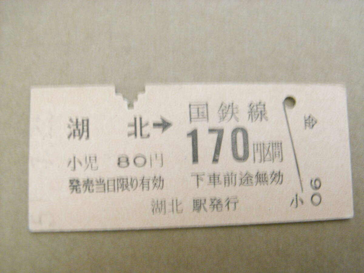 成田線 湖北→国鉄線170円区間 昭和51年7月25日 湖北駅発行 国鉄