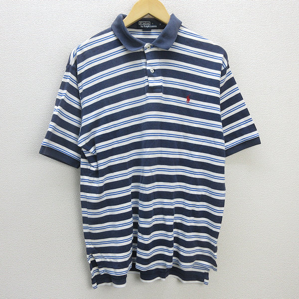 G■ポロラルフローレン/POLORalphLoren 半袖ポロシャツ/ボーダー【M】紺/men's/62【中古】■