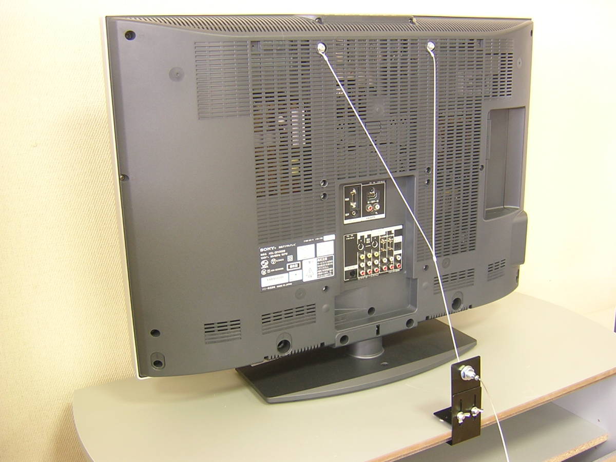 | テレビ本体とテレビ台を固定し、前倒れを防止するものです。 |