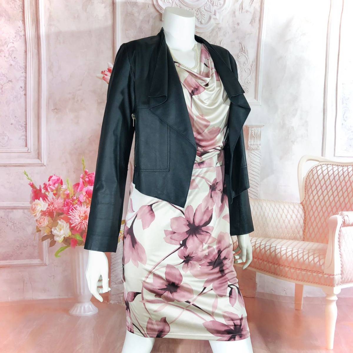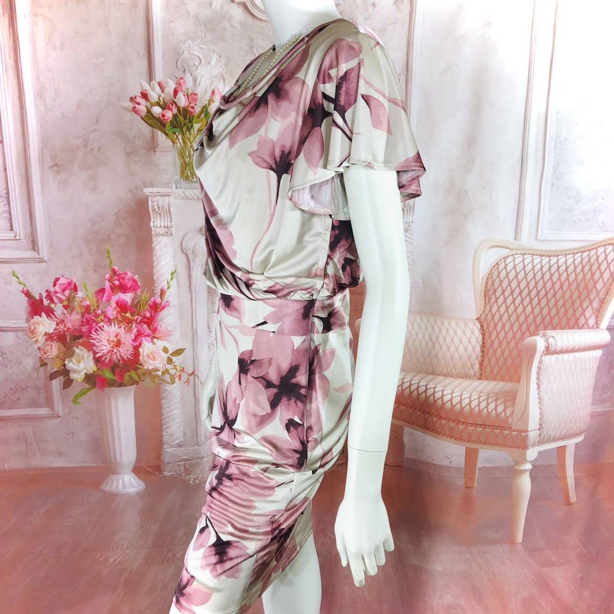 ピンク ベージュ 花柄 女子会 食事会 謝恩会 二次会