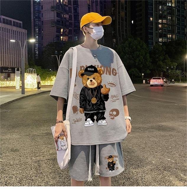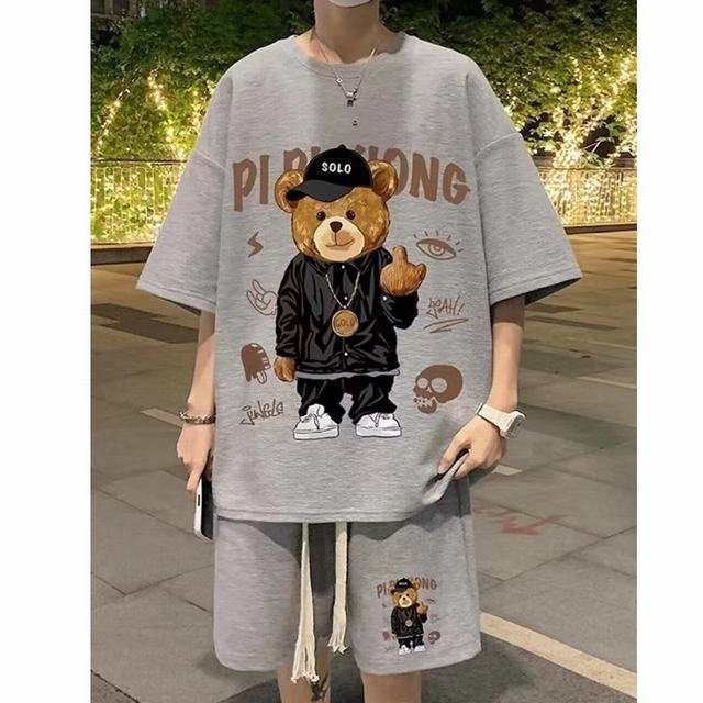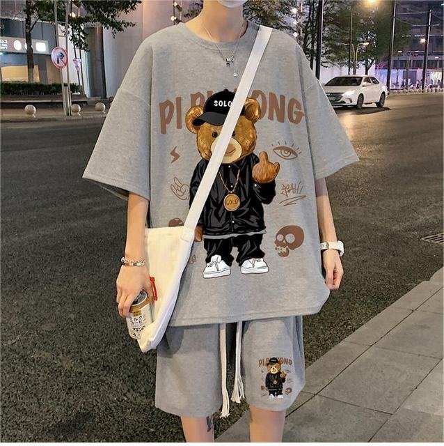 上下 半袖 春 夏 秋 おしゃれな半袖セットアップ セットアップ メンズ スウェット 大きいサイズ グレー 3XL