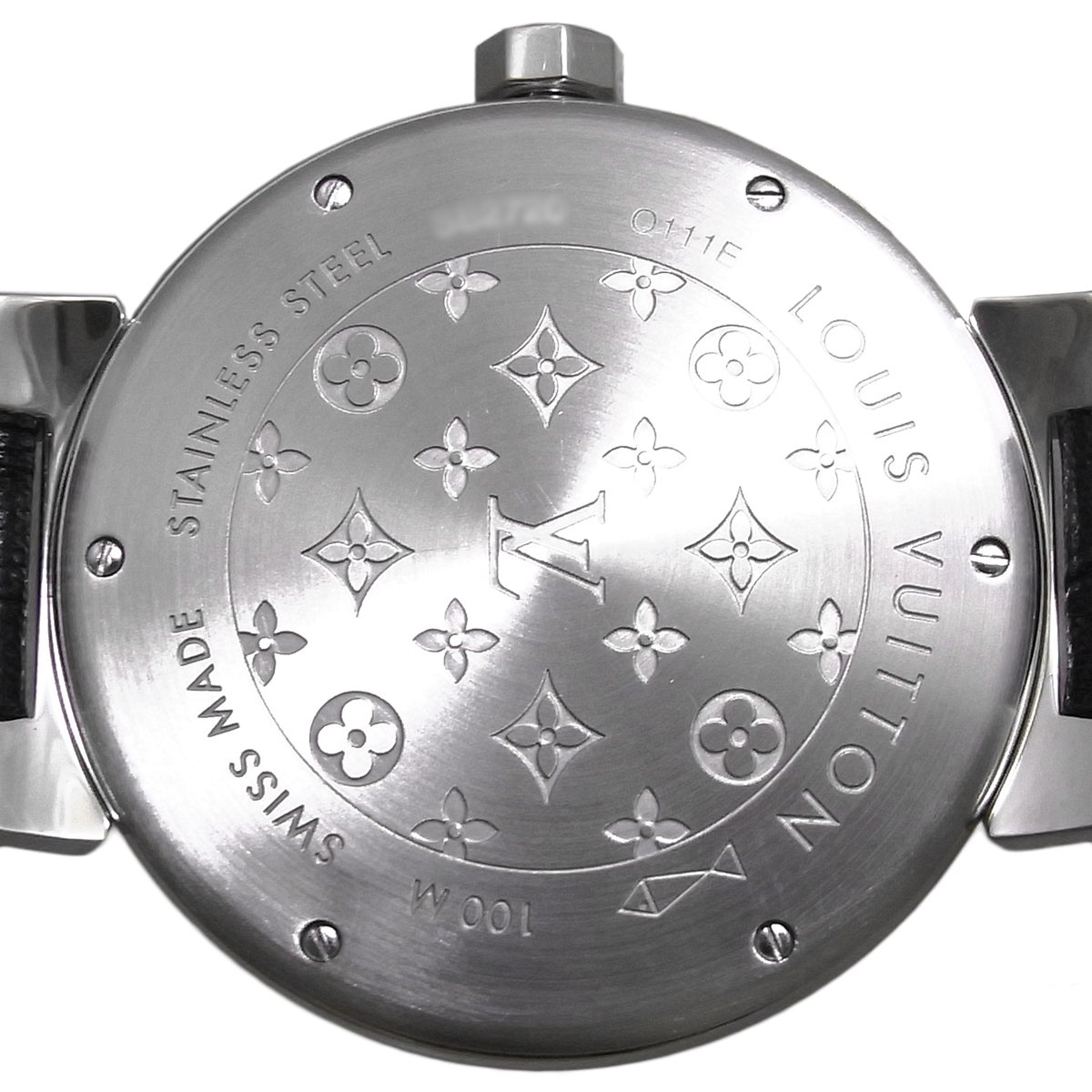 ルイヴィトン タンブール メンズ デイト クォーツ QZ シルバー文字盤 Q111E LouisVuitton