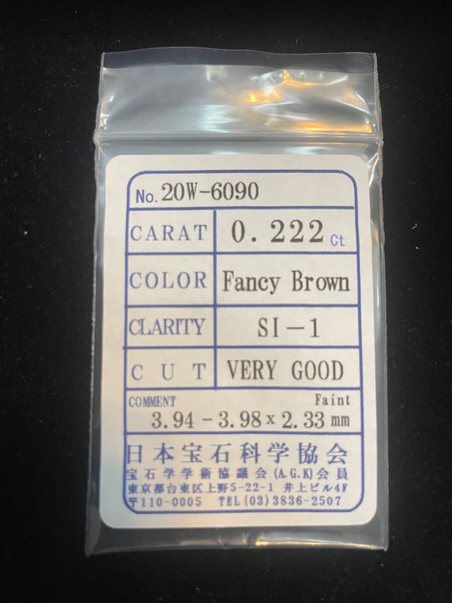CARAT 0.222ct /COLOR Fancy Brown/CLARITY SI-1/CUT VERY GOOD 大きさは3.94mm×3.98mm×2.33mm