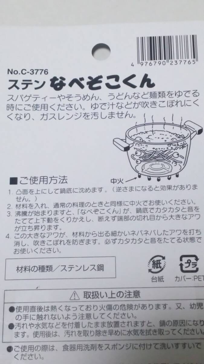 鍋の吹きこぼれを防止する器具です。 直径約8cm。 ステンレス製。