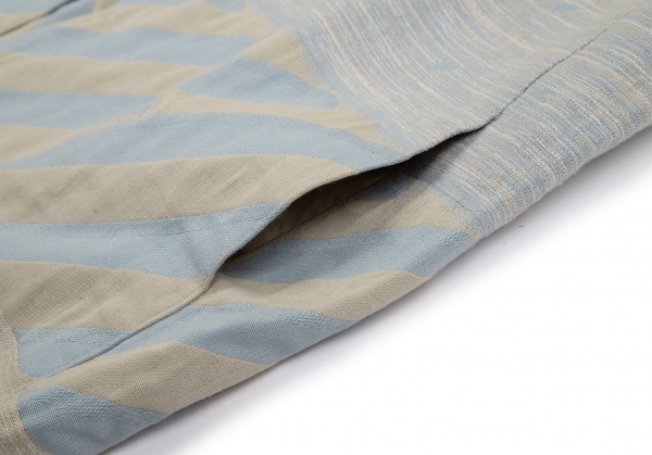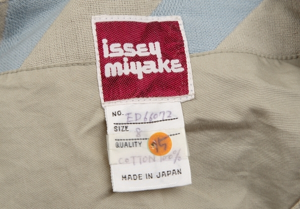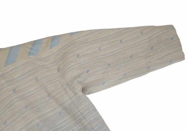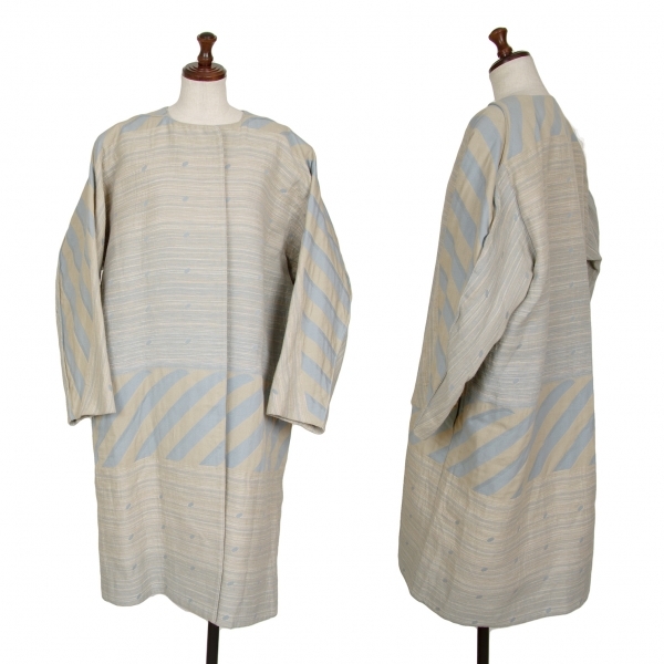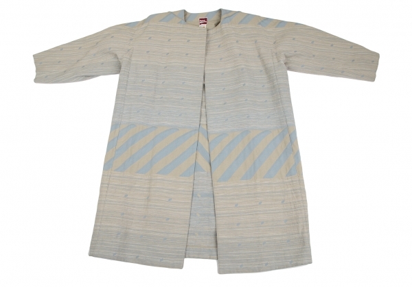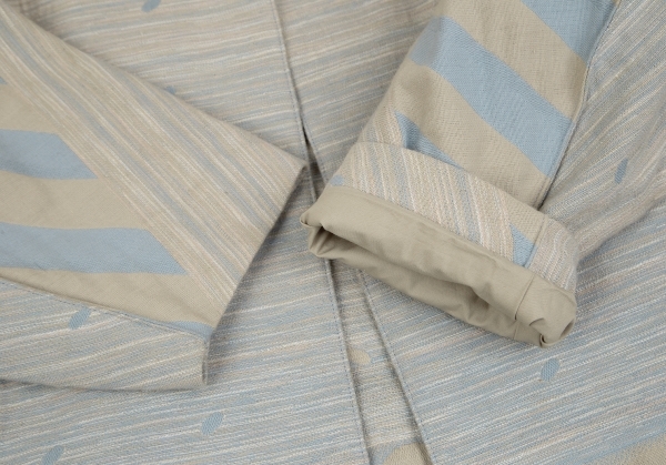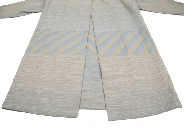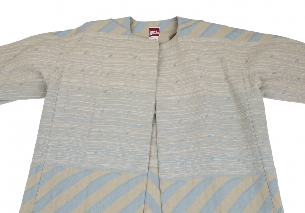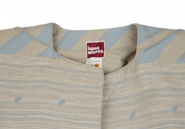 イッセイミヤケISSEY MIYAKE ストライプジャガード切替ボタンレスコート ベージュ水色8 |
