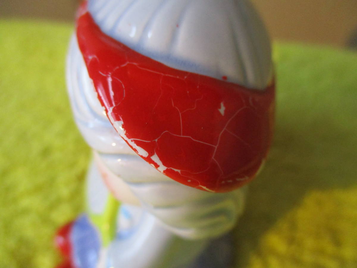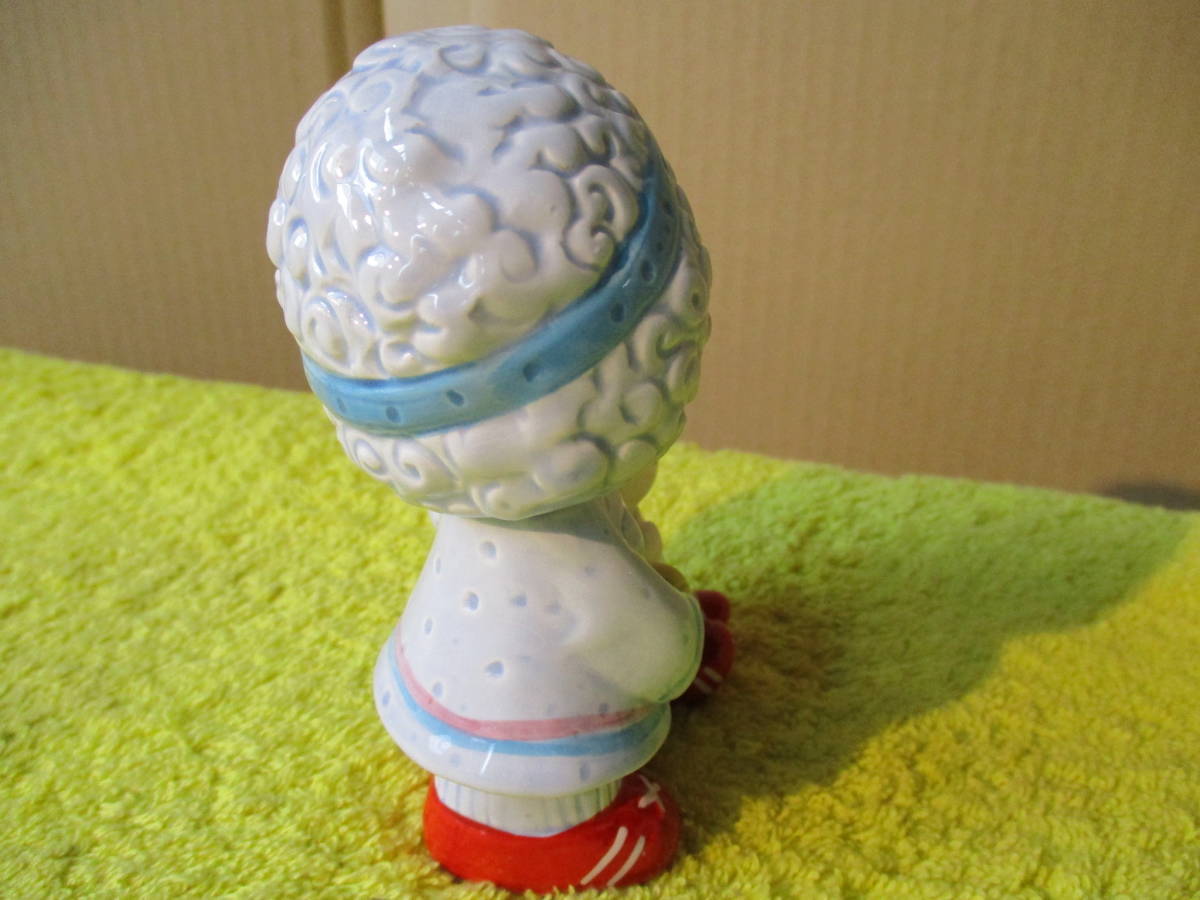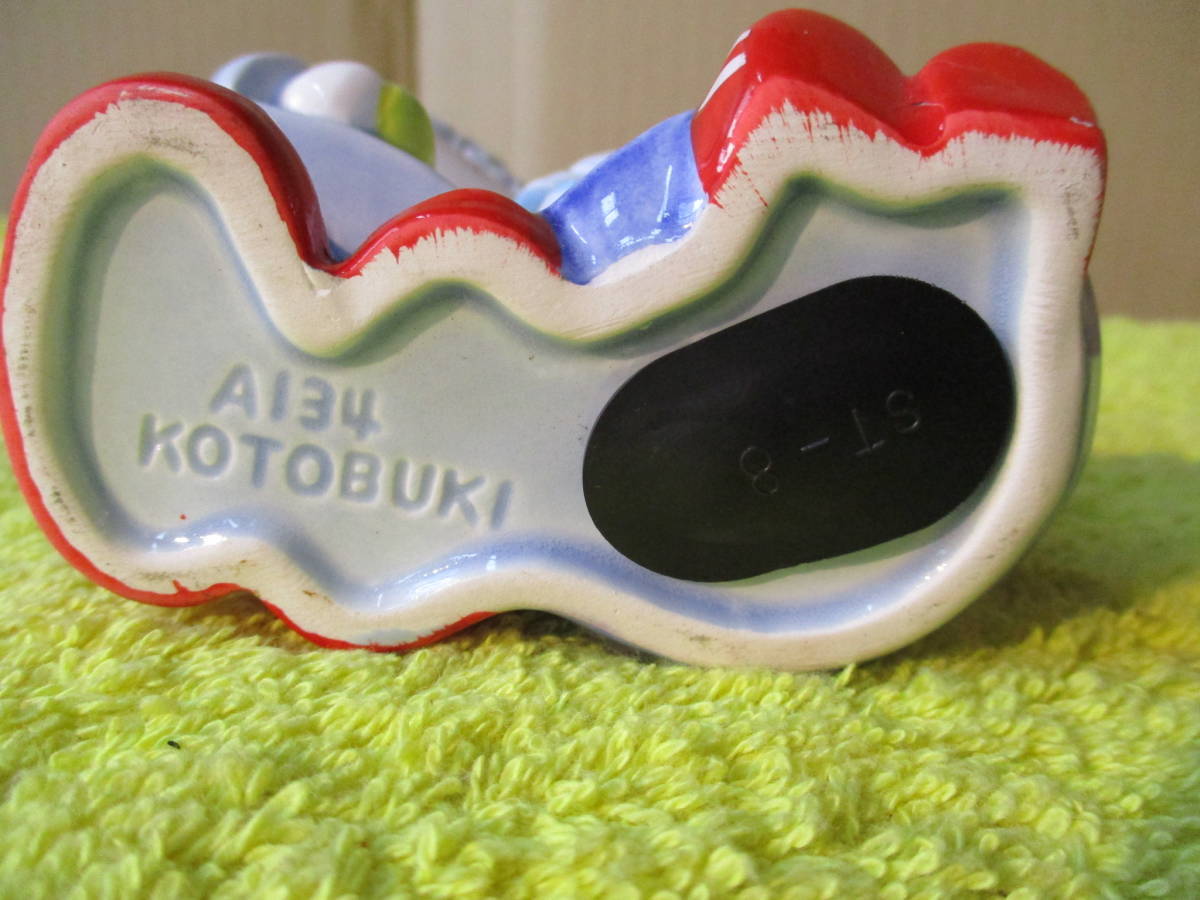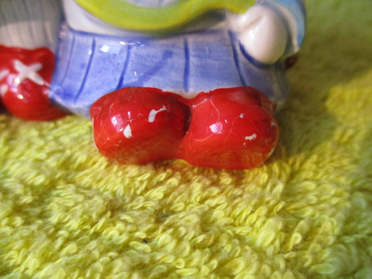 昭和40年代でしょうか?、小さい子の赤い帽子と靴先は手塗りなのか少し拭いたら剥げてしまいました、割れ欠け無し、底は経年保管擦れ少し有ります。