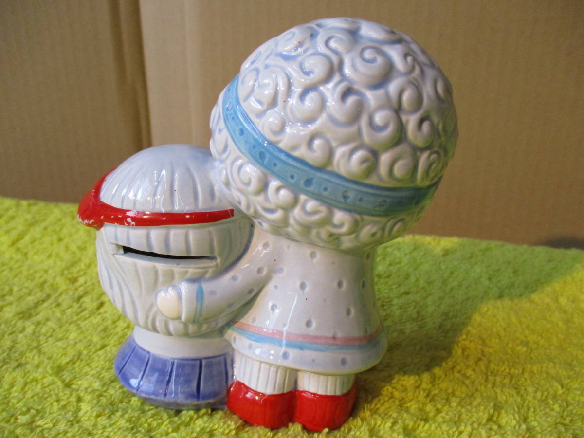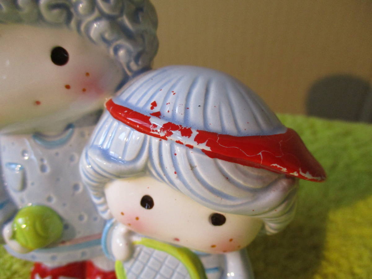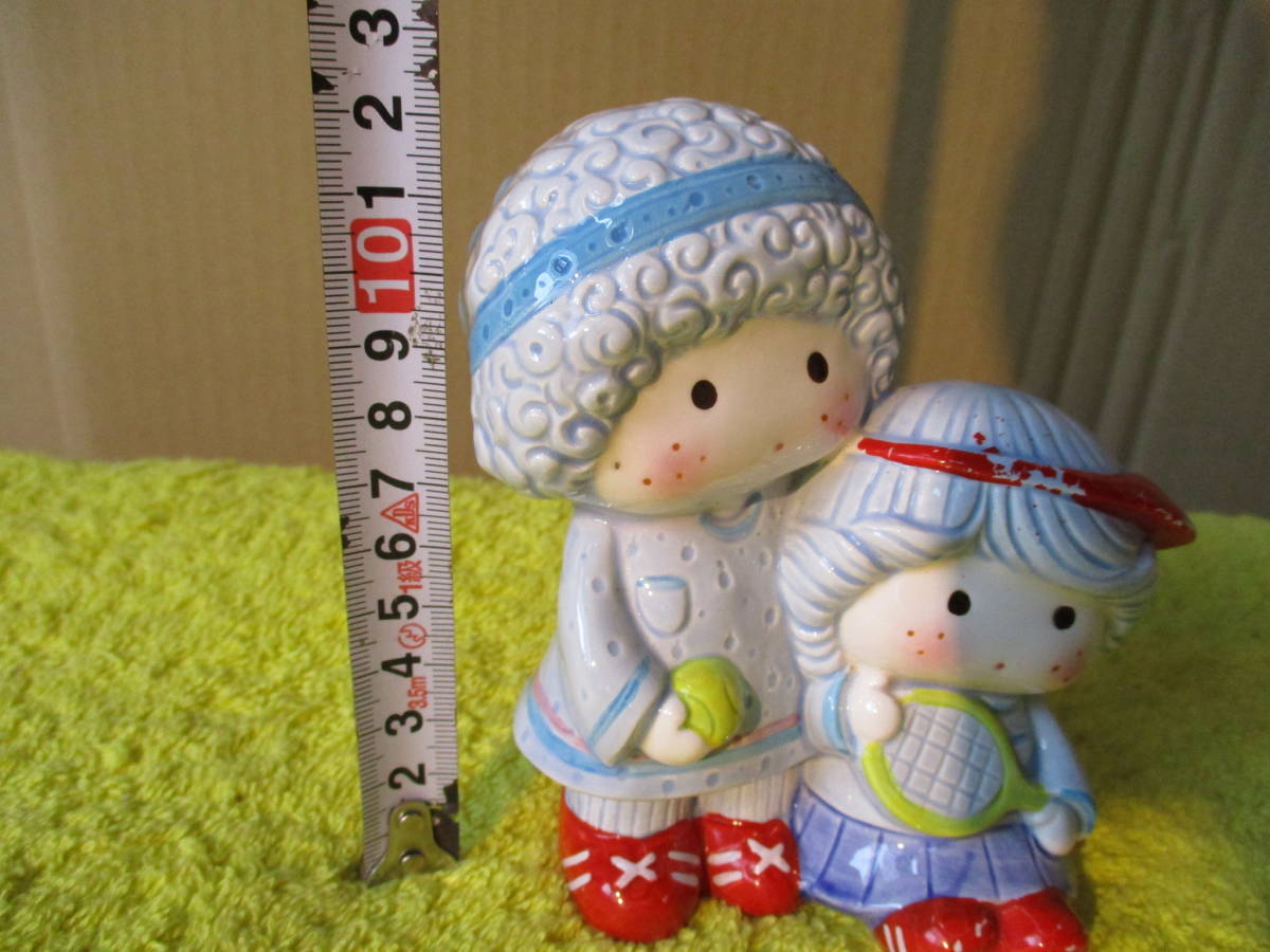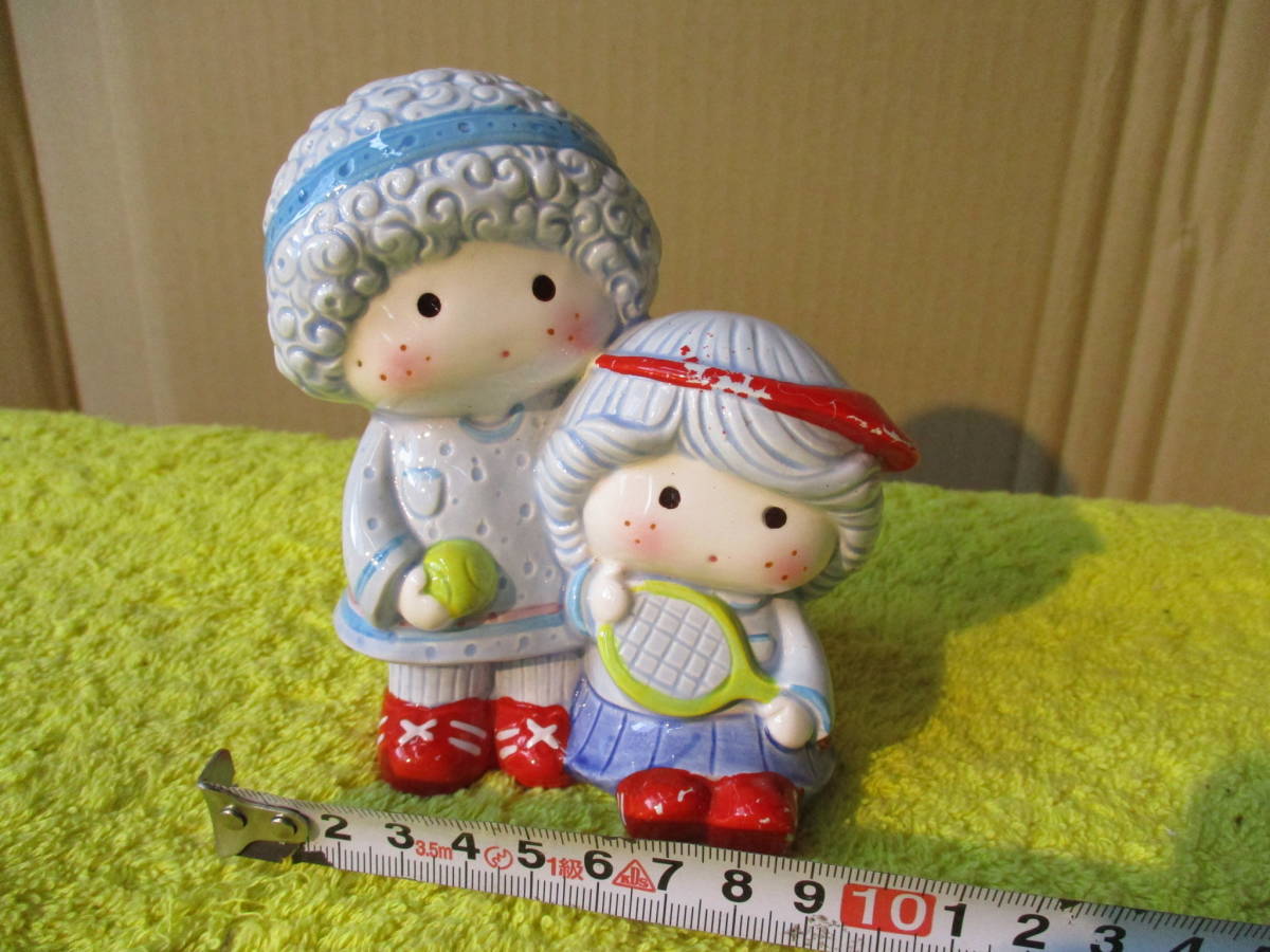 昭和 レトロ メルヘン 希少 貴重!貯金箱★陶器製 コトブキ KOTOBUKI テニスラケットを持ってる ソバカスの姉妹 少女★60