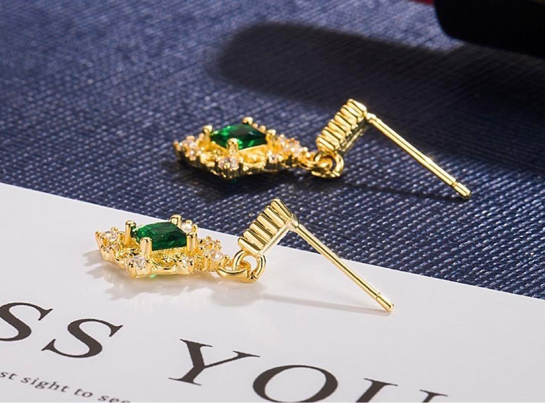 新品 レトロ風ピアス 菱形ピアス グリーンピアス レディースピアス シルバー925 ピアス アレルギー対応 ins風