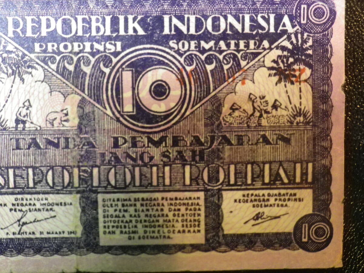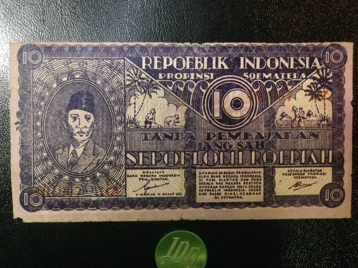 レア!インドネシア 戦時スマトラ州 シリーズORI 10Rupiah (パープル色)美品