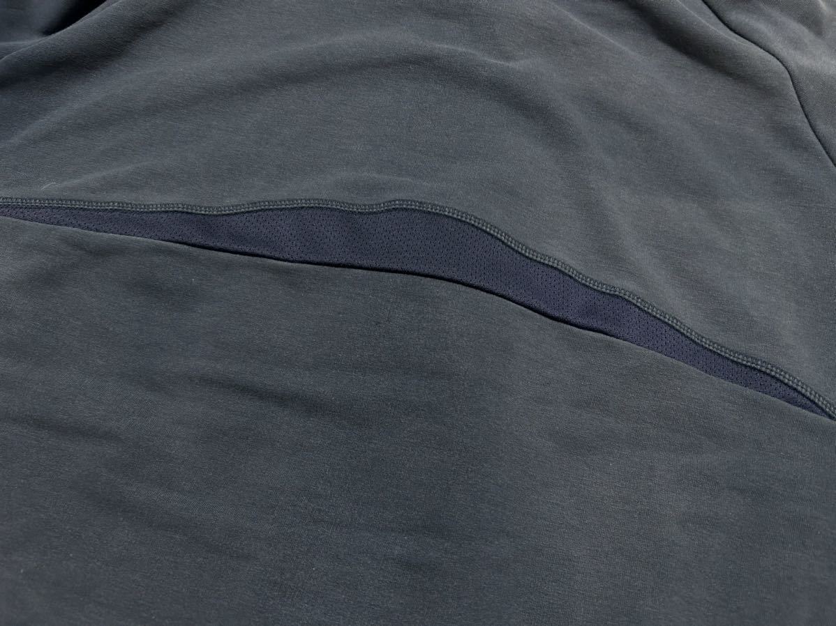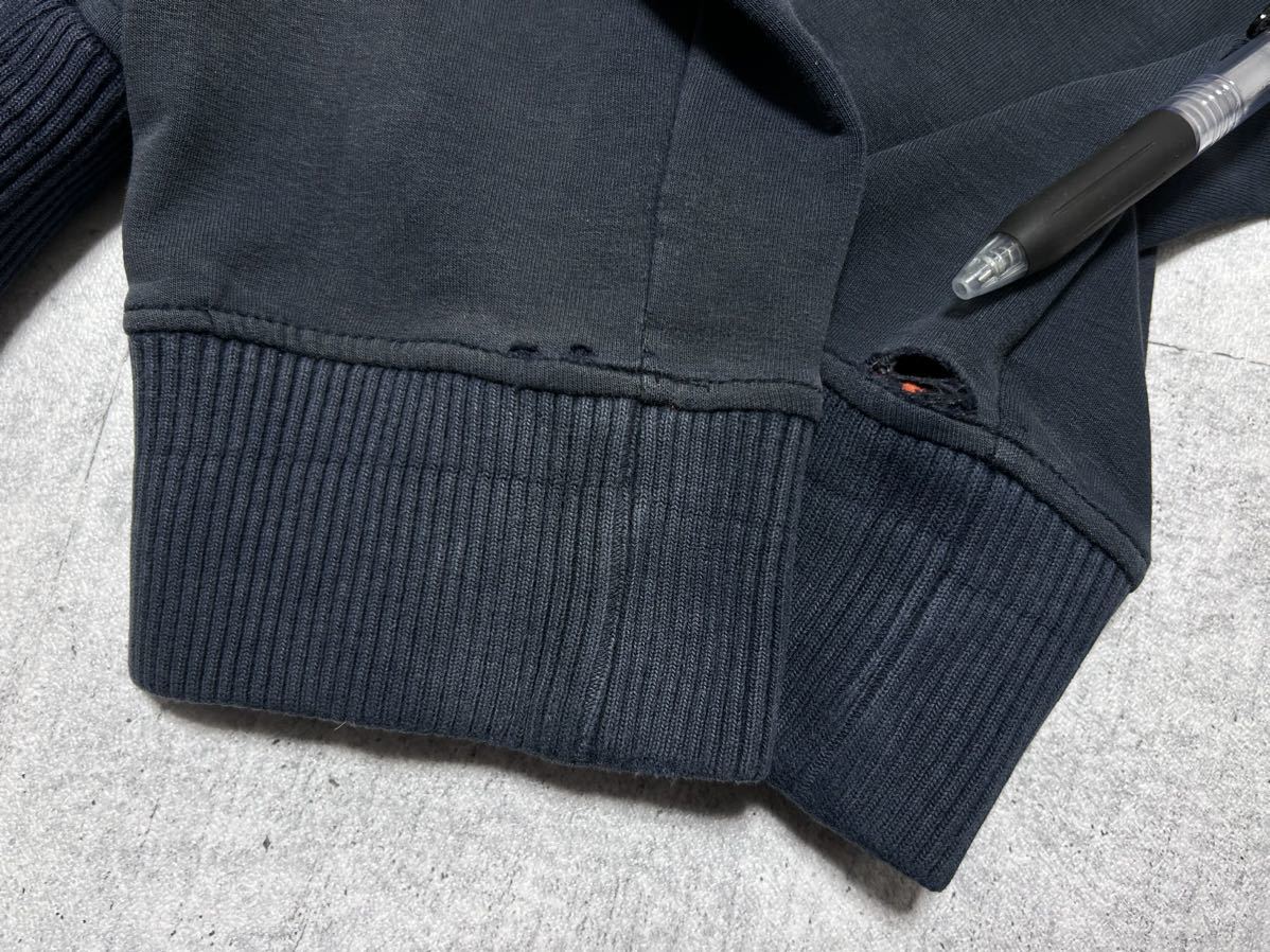 ・左袖前腕(背面側)に穴、両袖リブ付け根に破れがあります。