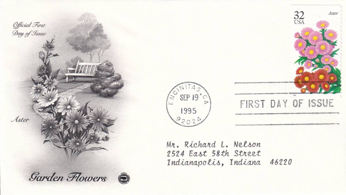 【FDC】庭の花:アスター(1995年)(3)(アメリカ)実逓 t4225